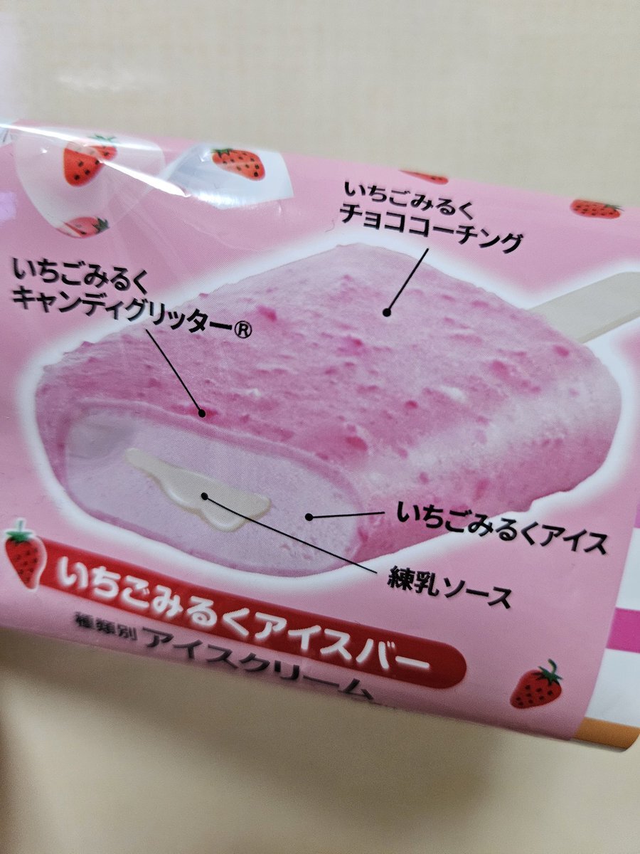 今週の翌日のアイス🍦 いちごみるくアイスバー🍓🥛 表面のいちごチョコ🍓🍫 中にいちごアイス🍓🍦 中心に練乳ソース🥛って、 完璧かよ~👏 そして、キャンディを砕いたのが 表面についてて、これまた新鮮❤️ めちゃ美味しい😆 #いちごみるく #アイス pic.x.com/5im4PmUPsX