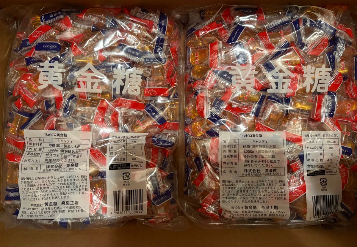 まとめ買いをしたくて、遊び半分で 1kg×2の #黄金糖 500g×2の #いちごみるく を購入 多分、一生分じゃないだろうか?と思わせる重量になった😅 年間通しての適切な保存方法が有れば、どなたか教えてください(о´∀`о) タッパー?ジップロック? 「開封後はお早めに」とあるけど、なかなか手強いぞ。 pic.x.com/fqLhMJZa6C