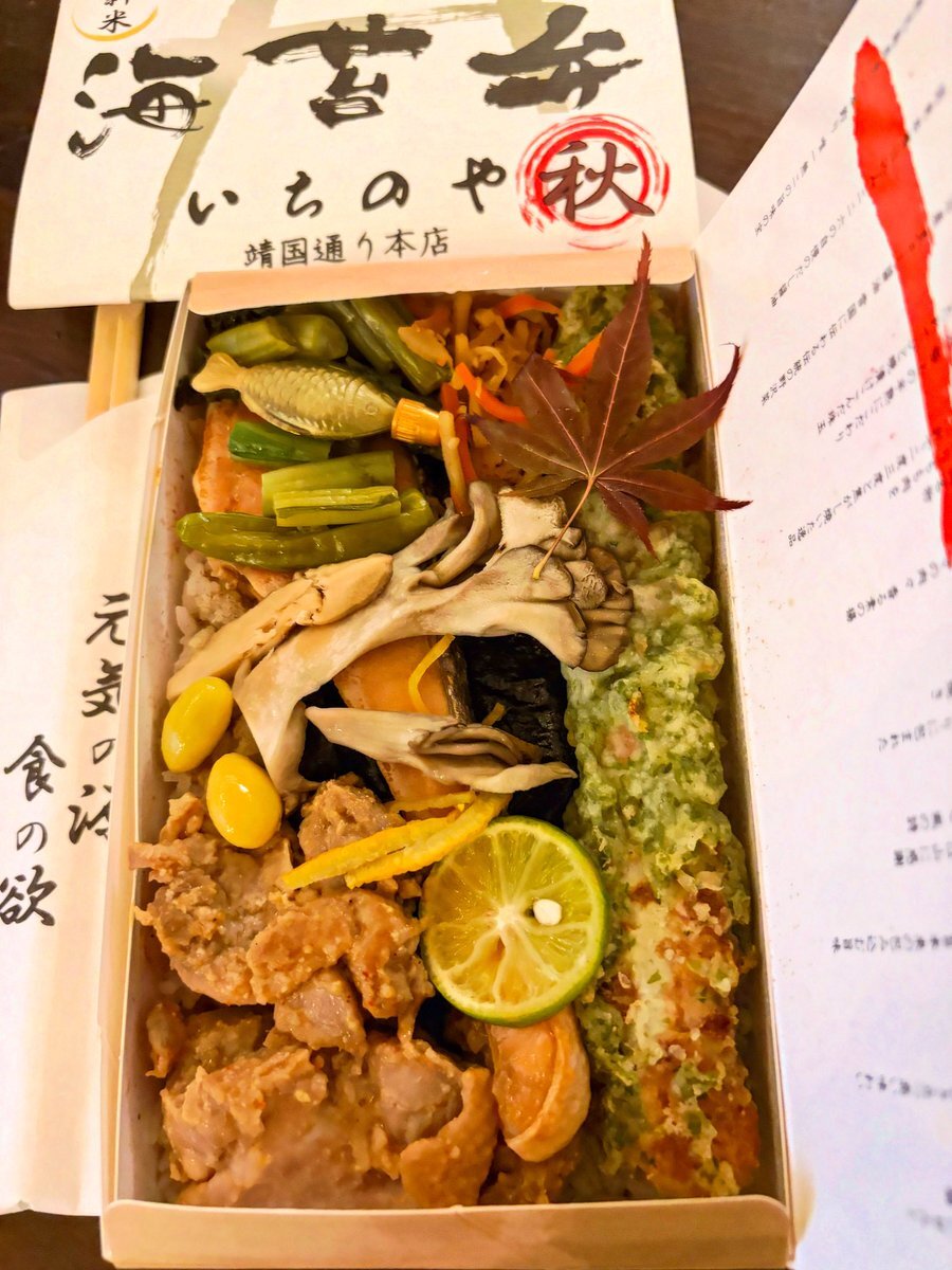 【『季節海苔弁』や!】 うわーい、凄い具材全然違う、秋過ぎる、美味しそう! 皆様 『ダブルヒガシのもうええてRadio#128』と『ギャンしょいエース』観てください! 2025.10.31 かんどうしたにゃぶちょうにゃ #ダブルヒガシ 様 #えてレディ #ギャンしょいエース #いちのや pic.x.com/oTck4MymWk