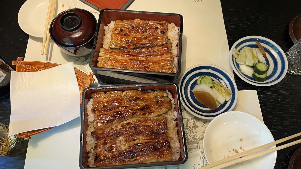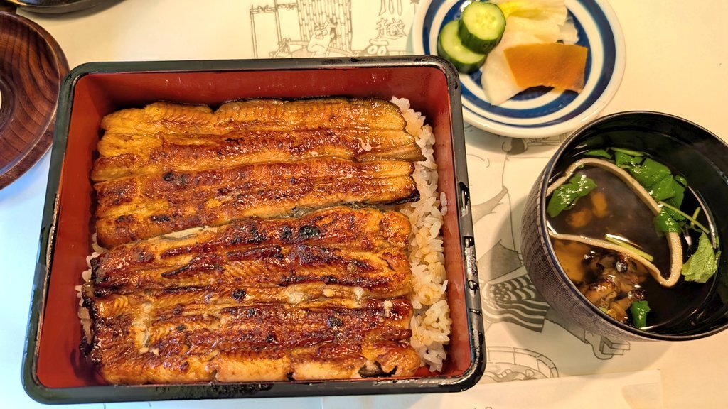 男子プロの準決勝12Gとても白熱した戦いでした🔥 師匠惜しくもここで終了、お疲れ様でした😊 帰りに川越で恒例の(?)鰻を食べました。美味しかったー😋👍 ランチョンマットの絵が可愛かった🥰 #いちのや #鰻重 pic.x.com/wDmv9sQToN