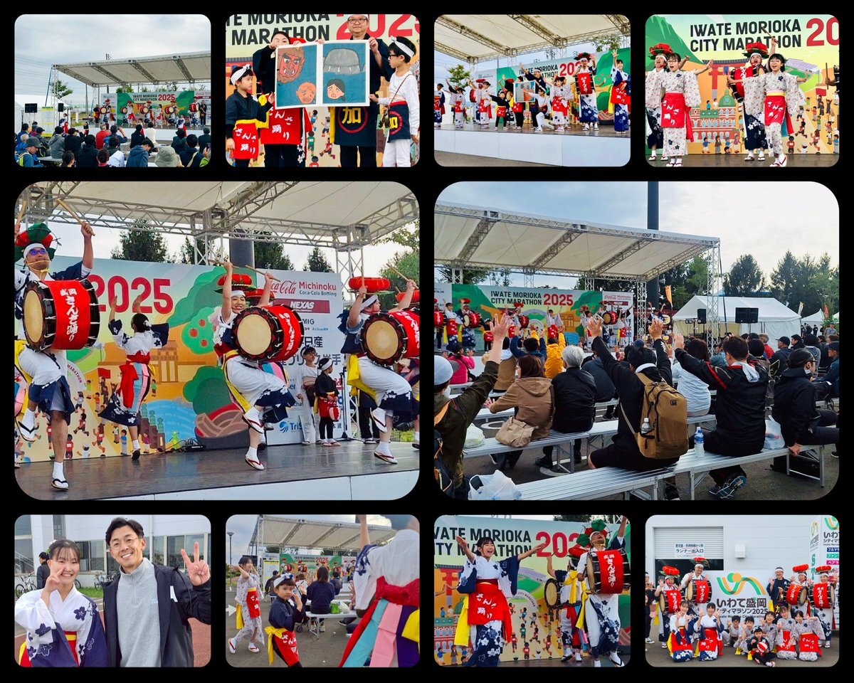 #いわて盛岡シティマラソン ステージ 海外からの方を含め、岩手県内外からのたくさんのランナーにご覧いただきました。 「岩・て〜」も「一緒に踊ろう」も、フルマラソン完走直後とは思えないほど元気に、参加していただけました。 笑顔で「さんささ〜」と踊っている姿を見て感激しました。 pic.x.com/MvMr5eKr3r