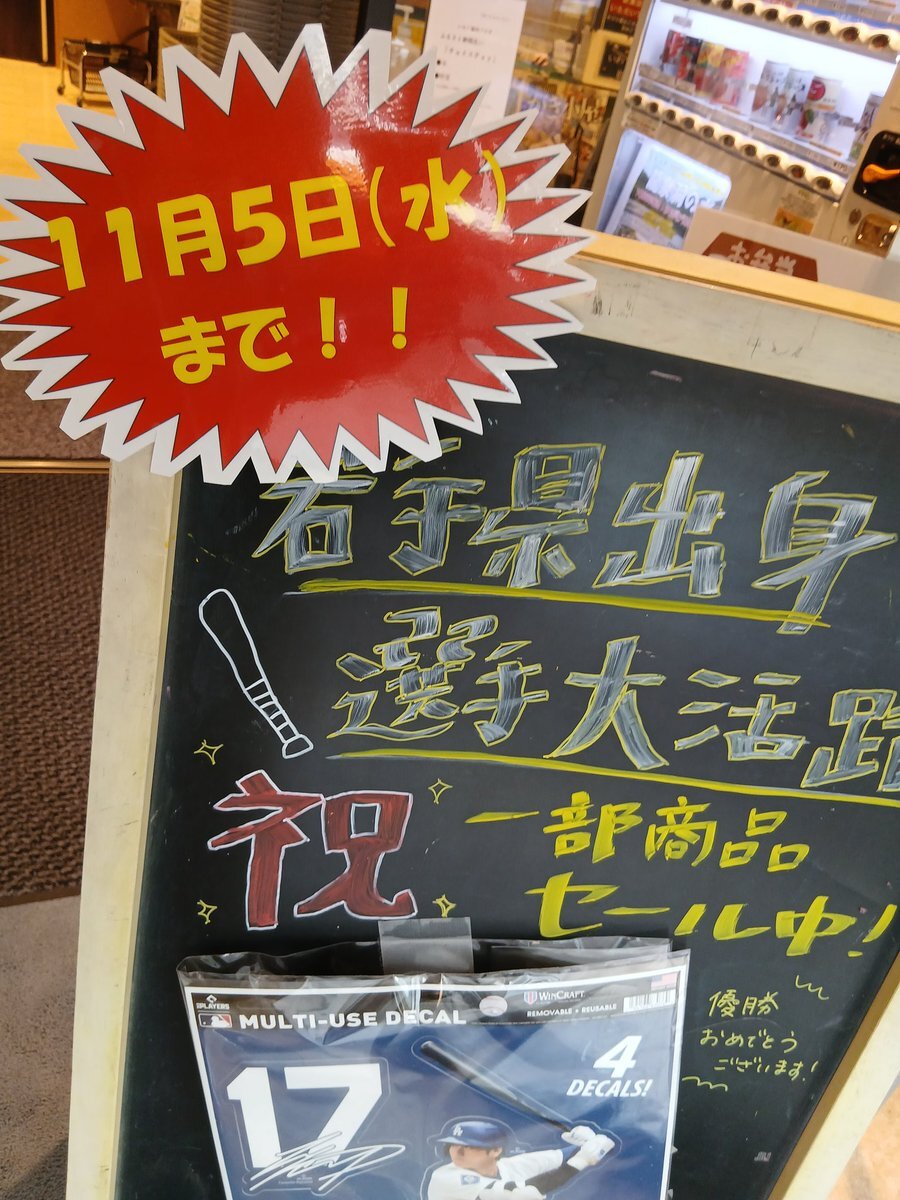 🎊㊗️岩手県出身選手大活躍㊗️🎊 🉐️🉐️🉐️一部商品セール中🉐️🉐️🉐️ ‼️セール販売は11月5日まで‼️ グッズや麺、菓子など一部商品お安く販売しております✨✨✨ ぜひお買い求めくださいませ🌞 #いわて銀河プラザ #優勝おめでとう