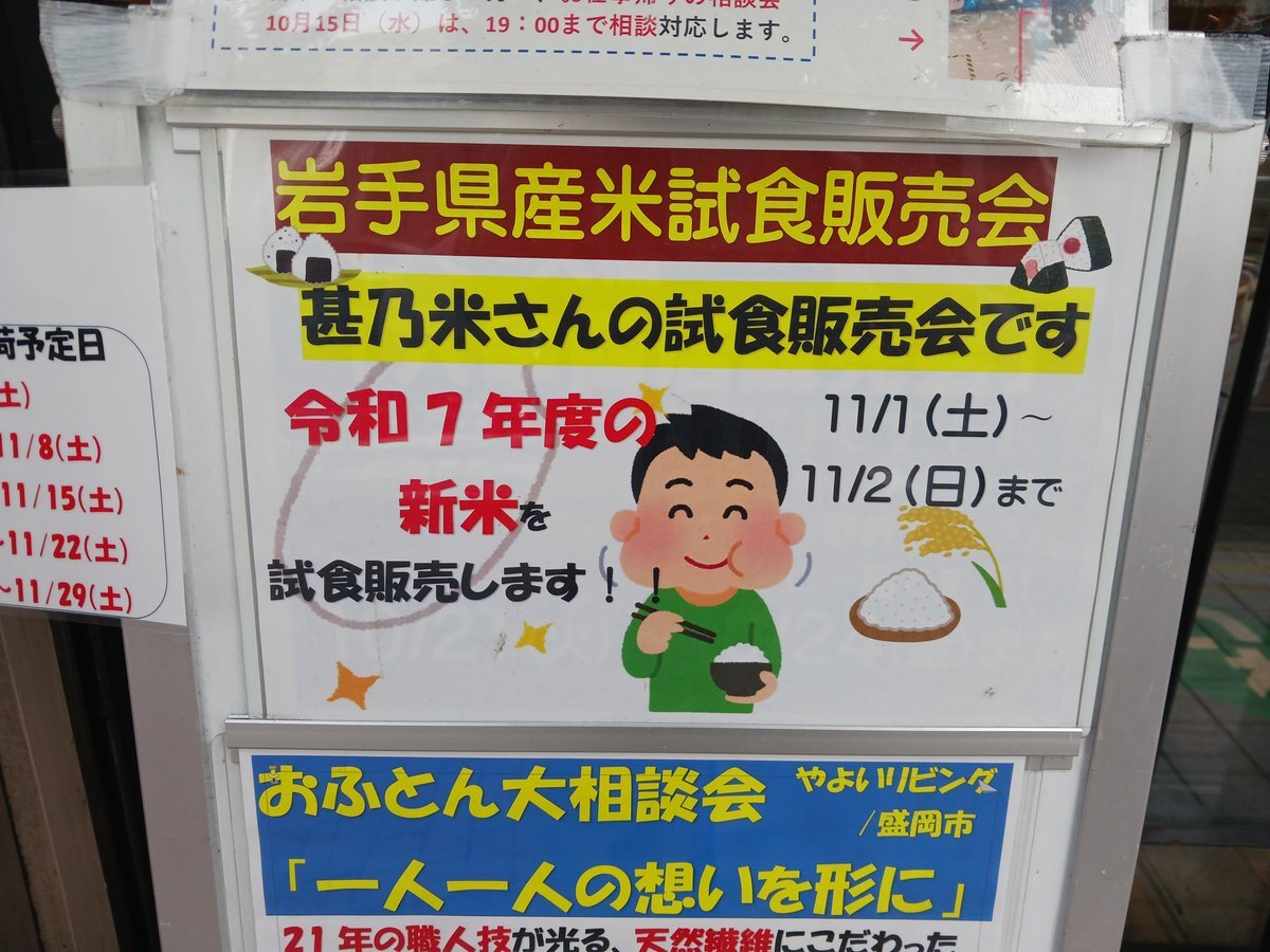 ㈱甚ノ米さん新米試食販売会🌾 本日11月1日~2日まで開催 ひとめぼれ新米、玄米 試食販売会しております❗ この機会に是非、いわて銀河プラザへお越しくださいませ❗ #ひとめぼれ新米 #いわて銀河プラザ #玄米 #紫波町 pic.x.com/tIdF6gvUYf