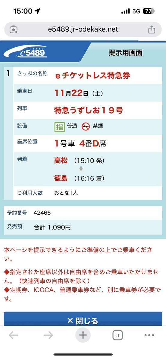 高松1510発徳島(1616着)行き #うずしお 19号で終点徳島まで、向かいます😎👍🚃💨 編成は、徳島方から 1号車 2758 2号車2766 3号車 2708です🚃に乗り換え e5489でチケットレス特急券を購入しました🎫 #2700系 #JR四国 #BROS1991 pic.x.com/jbviYlBAKy