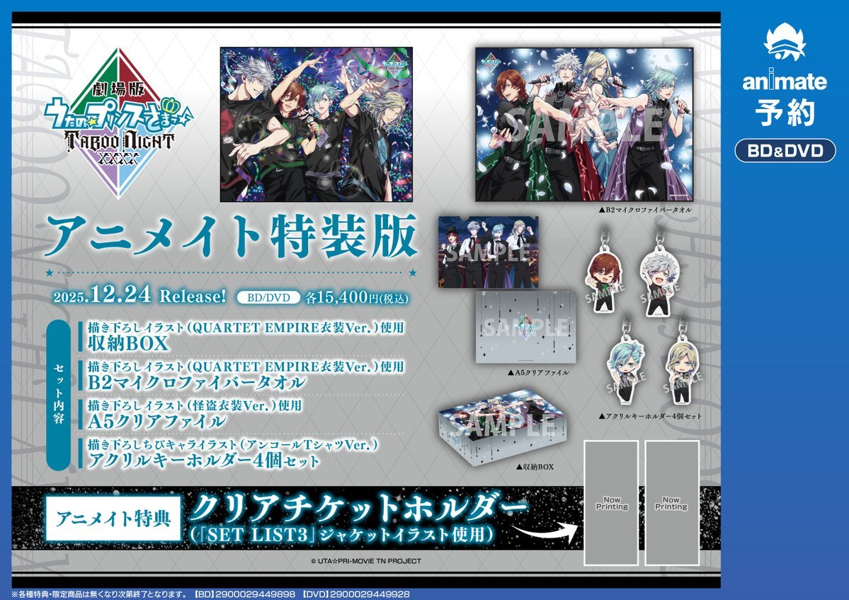 【映像予約情報】 12/24発売 『劇場版 うたの☆プリンスさまっ♪ TABOO NIGHT XXXX』 ご予約受付中🎤 🎁早期予約特典 🔹ブロマイド5枚 担当アイドル:美風藍 💜【11月3日(月・祝)〆】 #うたのプリンスさまっ #うたプリ #うたプリTN バーコード簡単予約はこちら🔻 animate-onlineshop.jp/pd/3264733/?ut… pic.x.com/JngqvWMffw