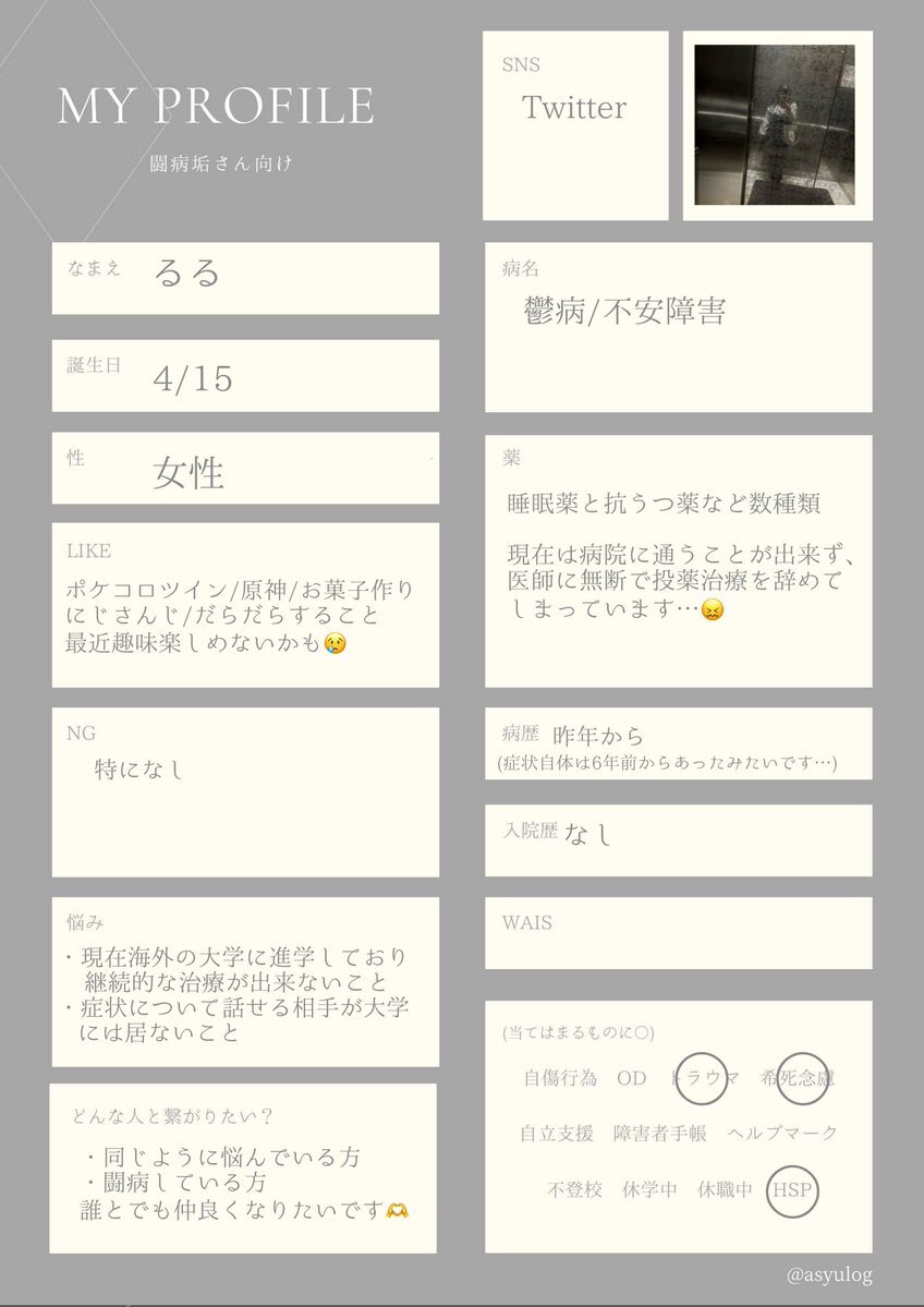 𝕥𝕒𝕘🏷𓈒𓏸︎ 仲良くしてくれる人ください ♡orRTで気になり無言フォロー 11¦♀¦ヤンヘラ¦鬱・PTSD・解離性障害¦深夜 #病み垢さんと繫がりたい #病み垢女子さんと繋がりたい #病み垢男子さんと繋がりたい #うつ病 #解離性健忘 #解離性同一性障害 pic.x.com/rlBhwoHLLb
