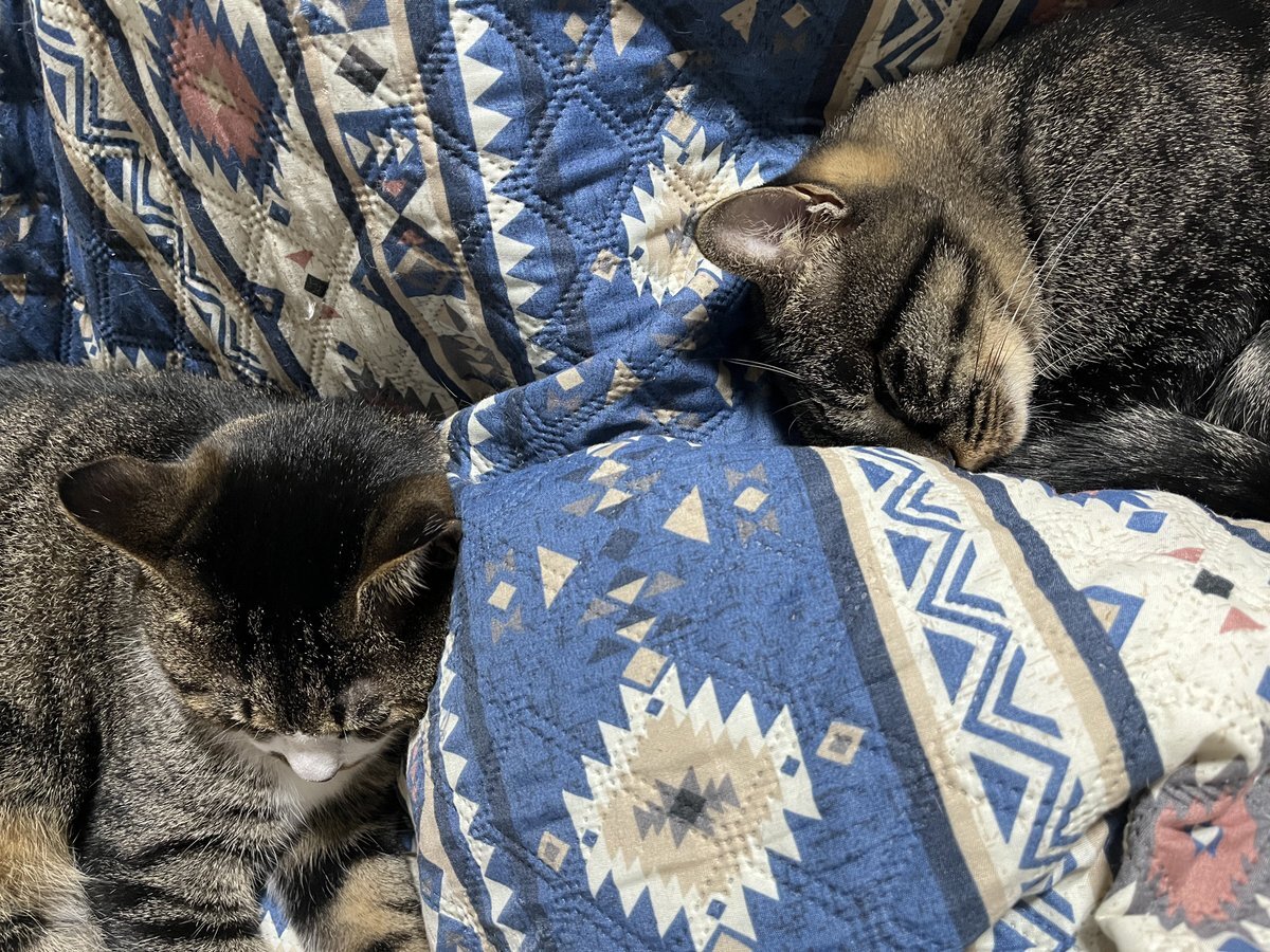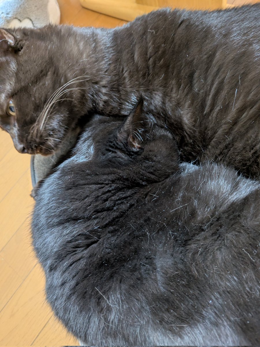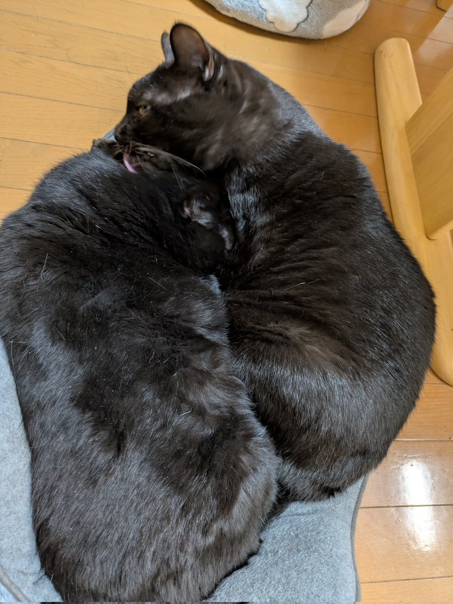 夜ごはん後のコーヒーを淹れたいのだけどひざ上でうにさんが寝てるから動けない🐈🐈🤣 #にゃんこ #うに #とろ pic.x.com/CiFp1eKuJp