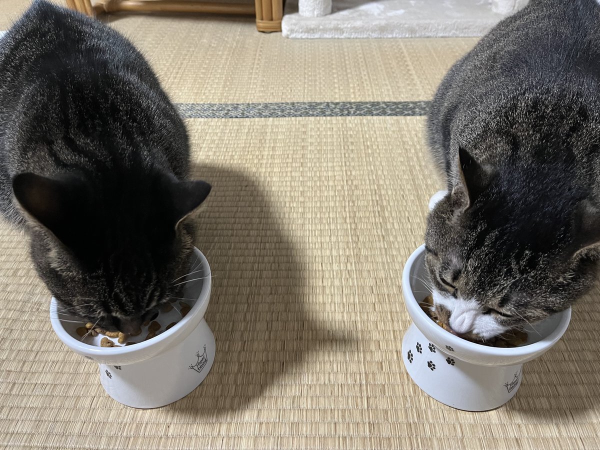 おなかのすいたにゃんこたちの朝は日曜日も早い…おはようございます😌🍚🐈🐈 #にゃんこ #うに #とろ pic.x.com/brubs4TduS