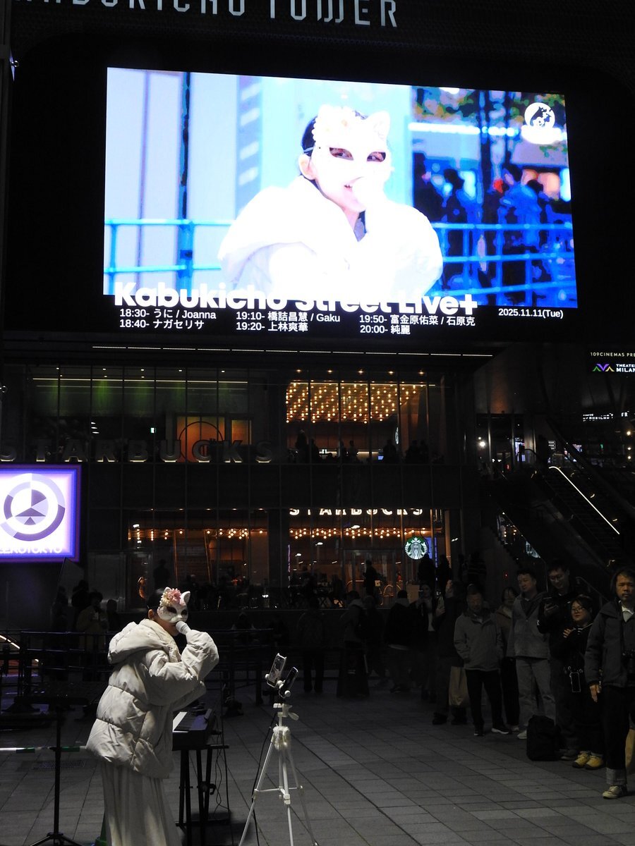 Kabukicho street Live+ 久しぶりにうに✺さんの路上ライブ 歌舞伎町タワーのモニターに大きく映ってました😳 ̖́-︎ #uni #うに #路上ライブ pic.x.com/wAJxWmeMA8