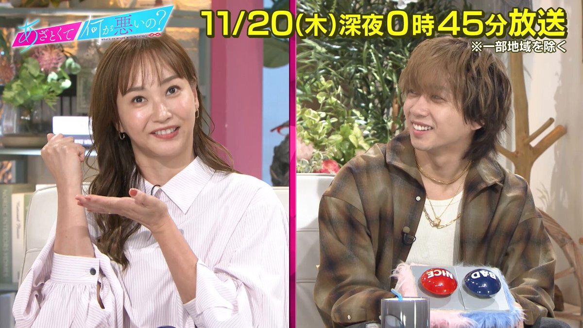 11/20 (木)深夜0時45分〜 ※一部地域を除く #藤本美貴 #TravisJapan #中村海人 をゲストに迎え!! 極上のあざとい褒め方を徹底検証!! 各々の恋愛観が赤裸々に… 放送お楽しみに〜!! #あざとくて何が悪いの