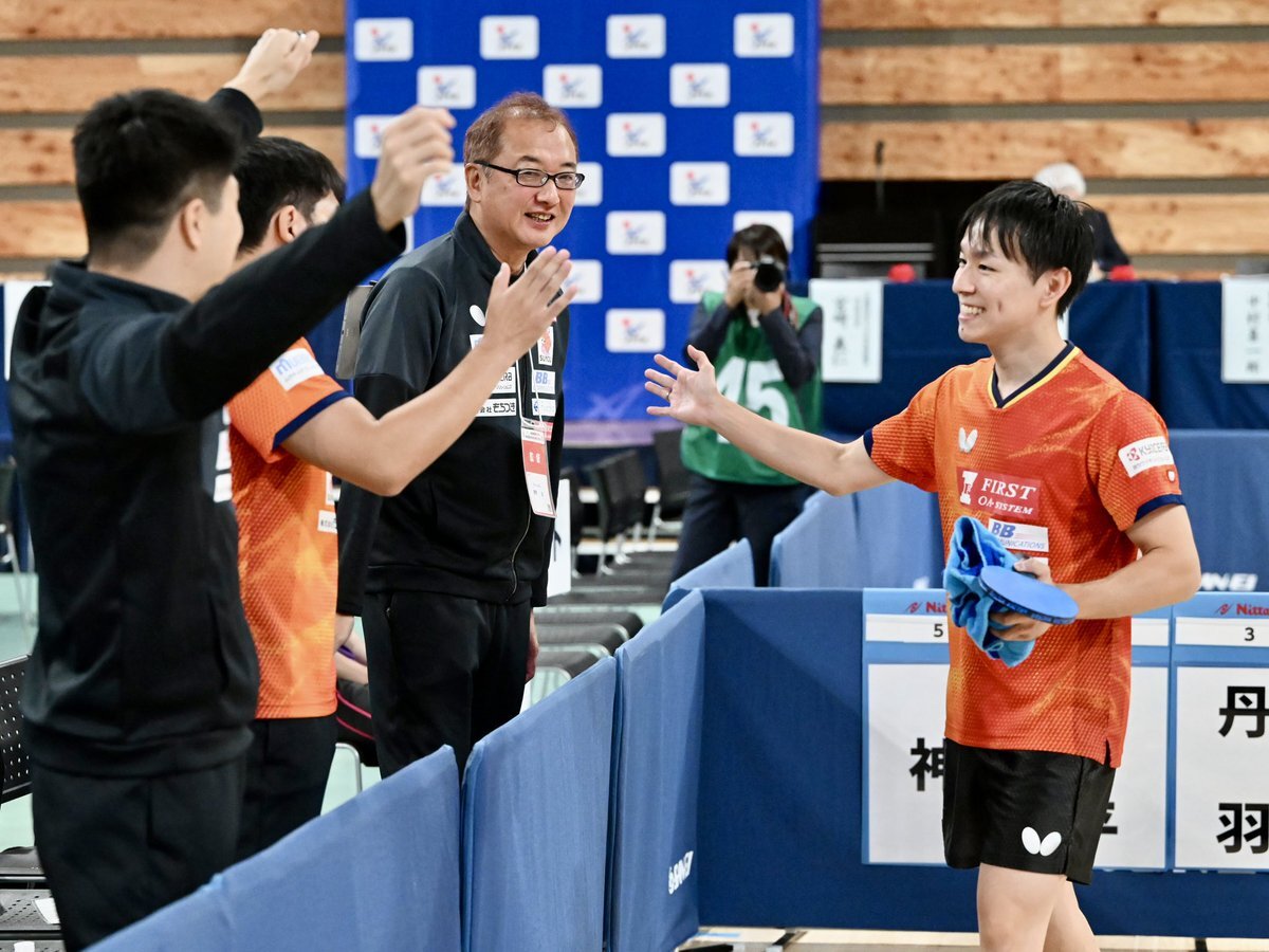 全日本選手権(団体の部)🏓 男子準決勝のファースト対シチズン時計の3番に登場した丹羽孝希が勝ち、ファーストが決勝へ。 #卓球王国 #卓球 #tabletennis #丹羽孝希 #おかえり pic.x.com/ygqQrl1N34
