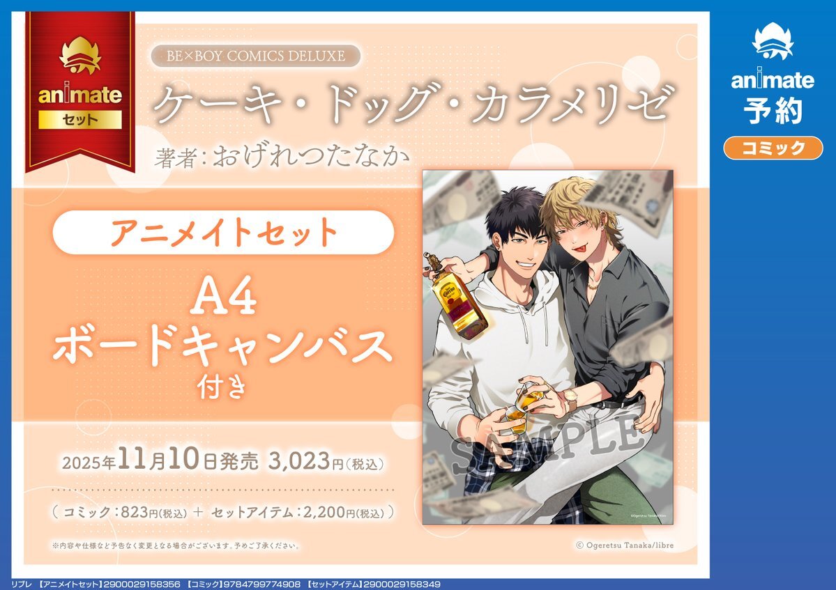 【書籍予約情報】 11/10 発売 「ケーキ・ドッグ・カラメリゼ アニメイトセット」 アニメイトセット仕様 ✨A4キャンバスボード付き✨ ご予約受付中!! #おげれつたなか 先生 #ポンバシBL animate-onlineshop.jp/pd/3223303/?ut… pic.x.com/OG4CzQAgpa