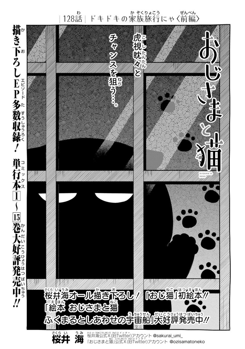 【おじさまと猫 128話(後編)】 ドキドキの家族旅行にゃ 本編の128話(後編)が更新しました! 続きはこちらです↓ comic.pixiv.net/works/4501 #おじさまと猫 pic.x.com/iB9mWqwzHk