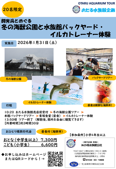 【1/31実施分申込受付中】 普段は入ることができない冬期の海獣公園、本館バックヤード、そしてイルカトレーナー体験!おたる水族館をもっと詳しく知ることができる人数限定のツアーです。 お申込みお待ちしています。 詳細はotaru-aq.jp/choineta/news/… #おたる水族館 #水族館 pic.x.com/tCd9GFR7lK