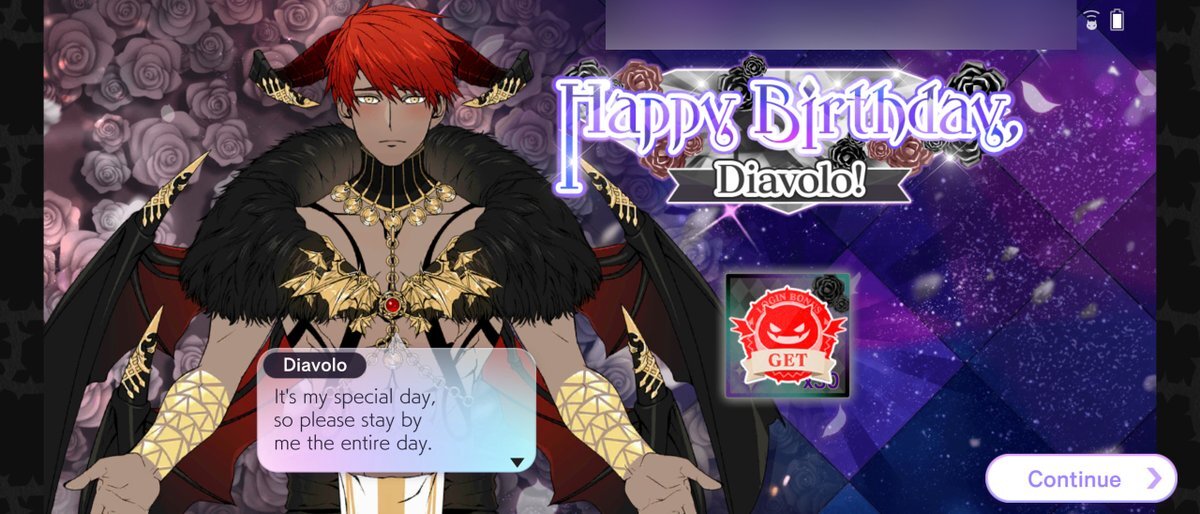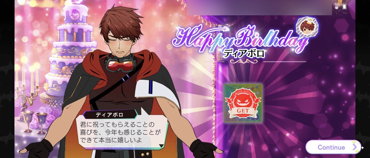 おべいみー/おべない両アプリにて、ディアボロの誕生日記念ログインボーナスが実施されています。 (メッセージが両アプリで異なります) 🎁:30DP 受け取りをお忘れなく😈 #ObeyMeBD #HappyBirthdayDiavolo #ObeyMe #おべいみー #ObeyMeNightbringer #おべない pic.x.com/lm3fqRuiTk
