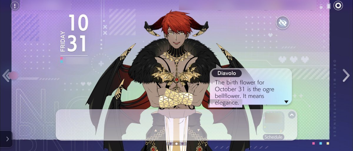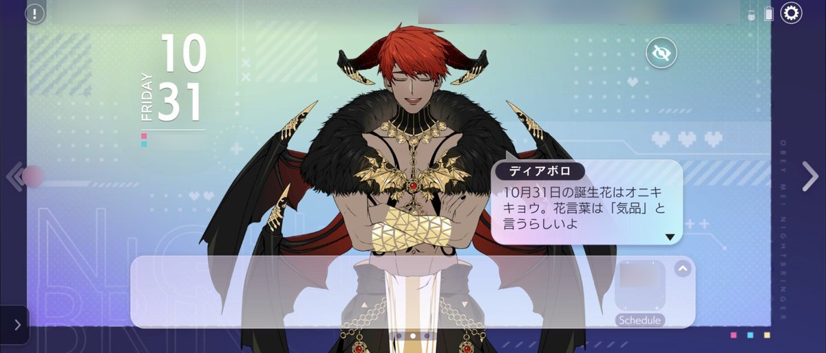 10月31日。おべないでは(おべいみーでも)「ディアボロの誕生日/Diavolo's Birthday」。 ホームで誕生日専用の台詞を聞くのをお忘れなく。(2つのアプリで台詞が異なります) Happy Birthday Diavolo! 🥳 #ObeyMeNightbringer #おべない #ObeyMe #おべいみー #ObeyMeBD #HappyBirthdayDiavolo pic.x.com/FsrdBBNldv