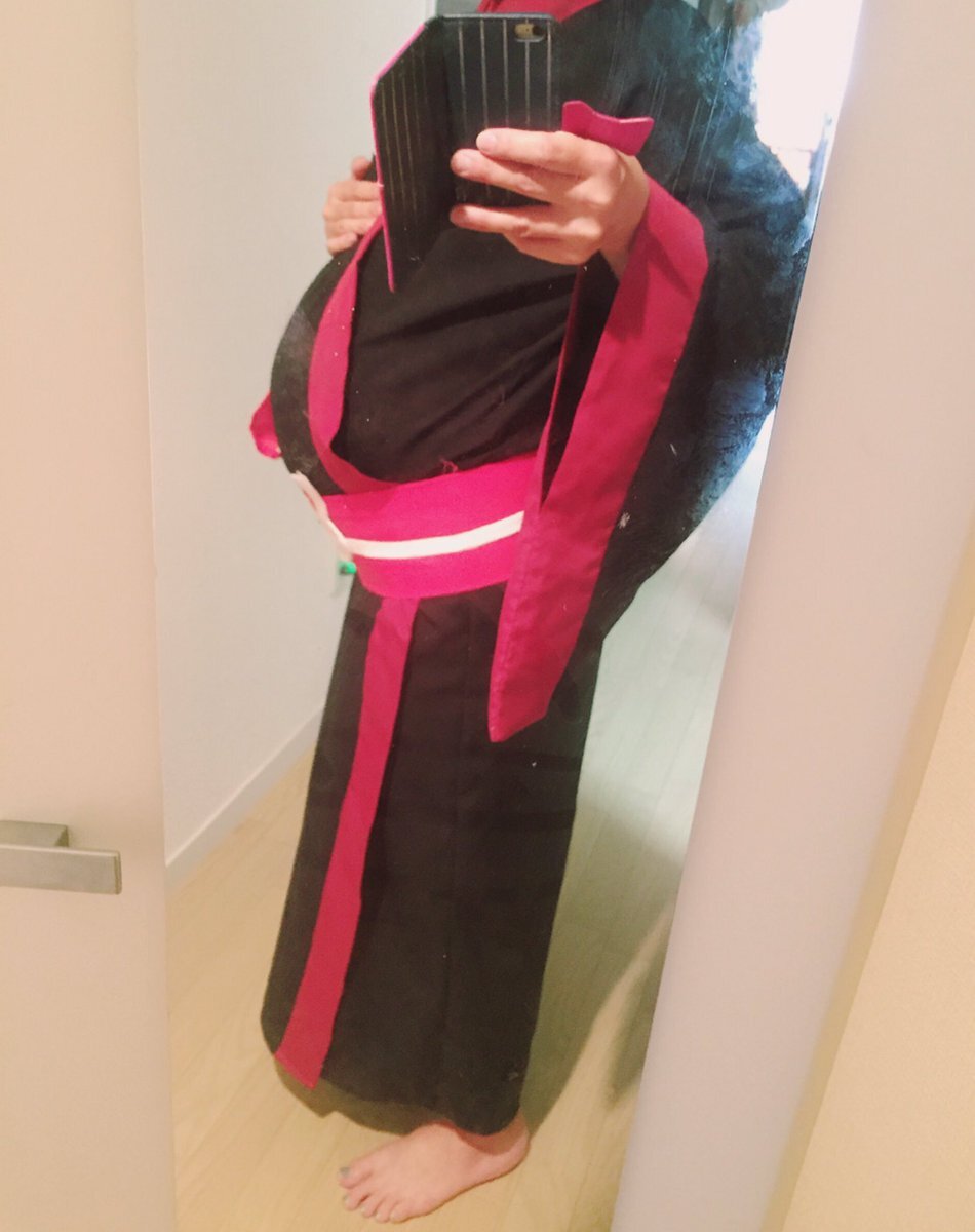 #おまえバカだなポイント 臨月で今しかない!と思って鬼灯の衣装着て「ふふふ、妊夫。」ってやってたら破水して危うくこの格好で産院駆け込むところだった事。 慌てて着替えました。 pic.x.com/diWXJozp5p
