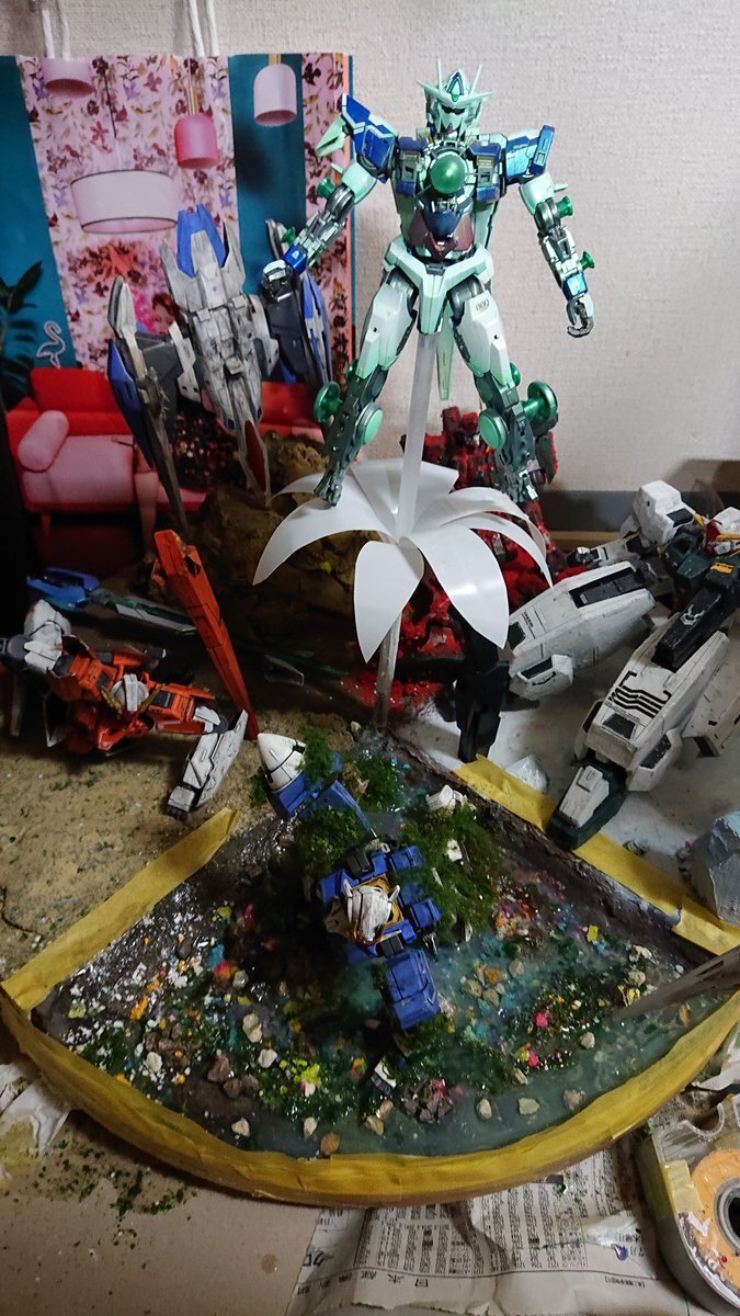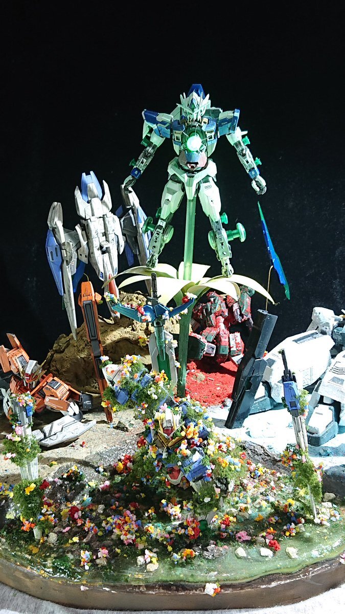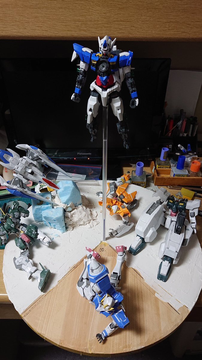 #おまえバカだなポイント 00のEDでジオラマ作る人多いけど みんなダブルオーだけだなー せや!全機まとめて作ろ! あとダブルオークアンタもおまけにつけとこ!(なぜ1/100にしたのか) pic.x.com/PzP8Dnzlxm