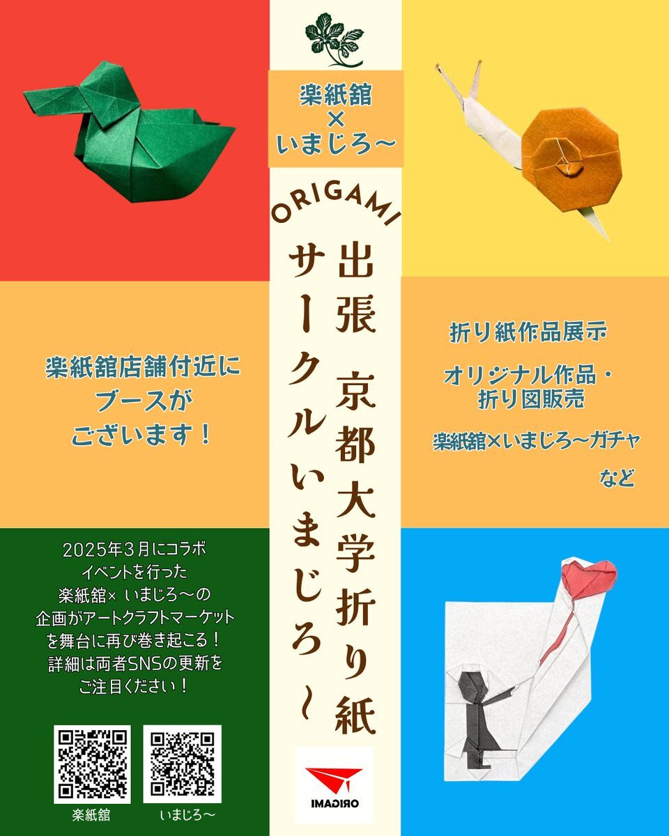 【楽紙舘×京都大学折り紙サークルいまじろ~】 10月11日(土)~13日(月・祝) 京都文化博物館1階楽紙舘店舗付近にて 京都アートクラフトマーケットに出展中です! 13日(月・祝)は楽紙舘も臨時営業しています。 いまじろ~の和紙折り紙の世界へ 是非お越しくださいませ😊 #楽紙舘 #和紙 #京都 #折り紙 x.com/RAKUSHIKAN/sta…