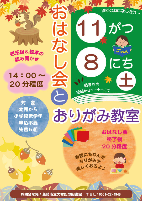 10月11日土曜日に「おはなし会とおりがみ教室」を開催しました。季節の絵本を紹介し、おりがみ教室では「#きつね」をおりました♪次回のおはなし会は11月8日土曜日です。お待ちしています♪ #韮崎市立大村記念図書館 #おはなし会 #おりがみ pic.x.com/LciPcrdsoj