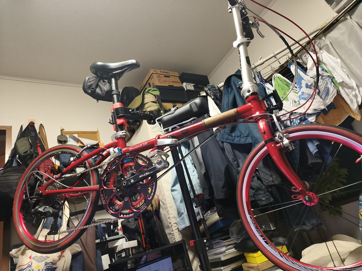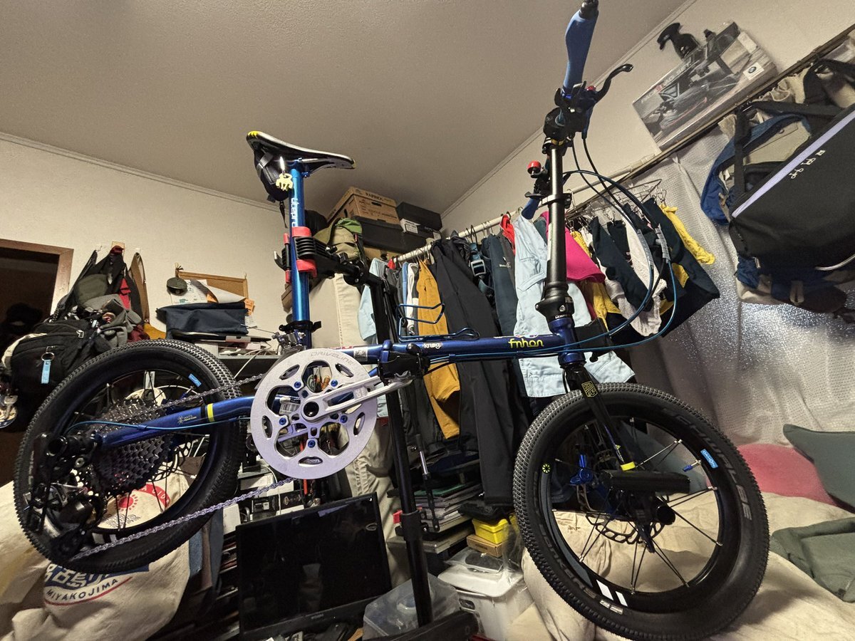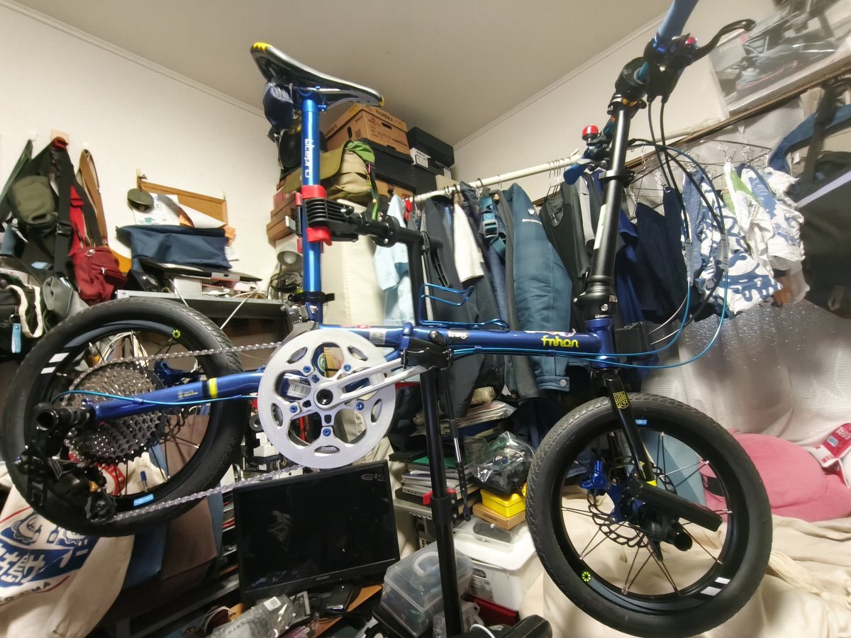 fnhon gust16 バラ完への道 最終回 作りたかったのはK9Xリファインの対局 速さより安定感、坂道に強く 結局余剰パーツで使えたのが ホイールとブレーキだけで ドライブトレインはほとんど新規w ま、色々勉強になりました 来年は自転車組まないぞ! おしまいʅ(◞‿◟)ʃ #おりたたぶ #fnhon #gust16 pic.x.com/N0q8DI2Fqg