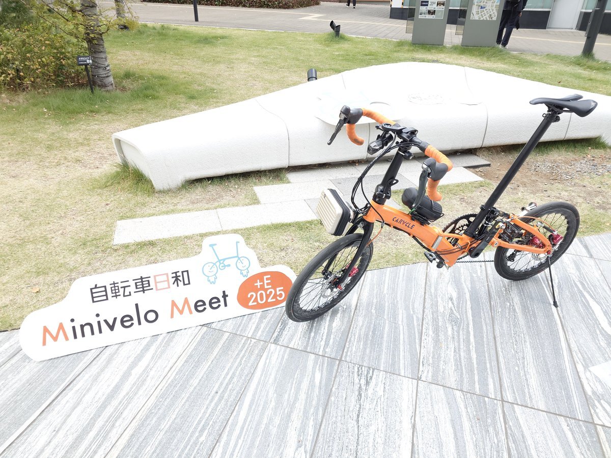 自転車に乗り始めて9ヶ月 ミニベロイベントに行ってみました 自動変速ミニベロロード チタンフレーム? 自作できんか考えてた台車キャリア?の試作品があったり YAMAHAショールームには始祖電動アシストが 私以外にもFD付けてた人がしかも自作台座 #MiniveloMeet2025 #ミニベロミート2025 #caracle
