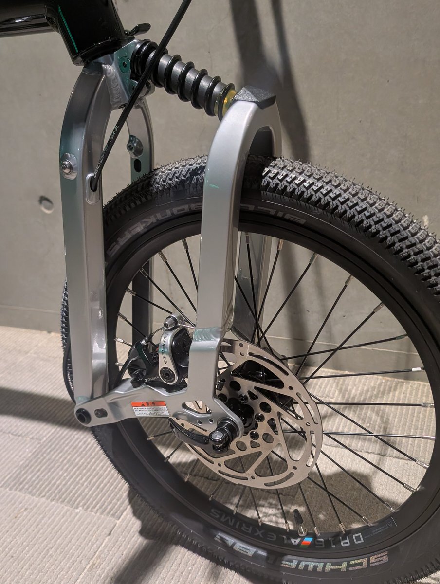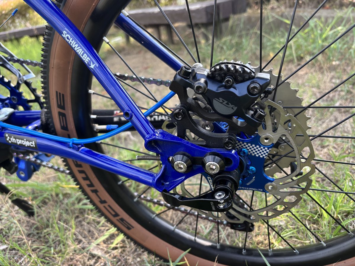 カラクルの新車、チタンだとは思ってだけどワイヤーフル内装!? カラクルcozはリアスイングアーム式だから、剛性のある固定式で、エアロももう少し・・・と前回の東京ミーティングでリクエストしたら、予想以上のアンサーですよ! しかも待望のスルーアクスルDISCブレーキ! #caracle #おりたたぶ x.com/yumemi217/stat…