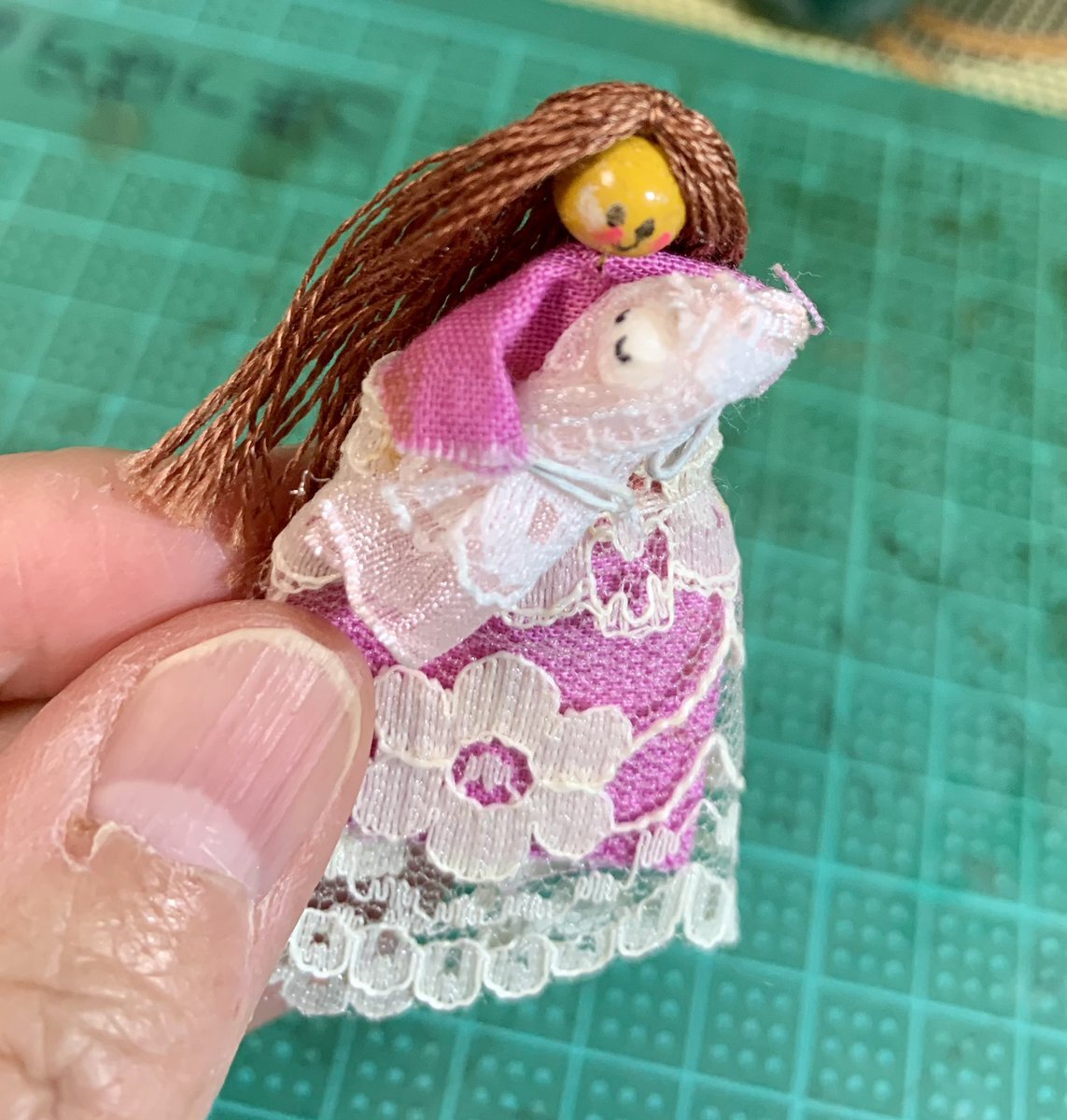 新しい髪になりました。このお人形は、20年くらい前にヨーロッパに行った時に買ったものです。髪も服もちょっと変わったセンスですよね。#お人形 #手芸 pic.x.com/YO4h4DOlnf