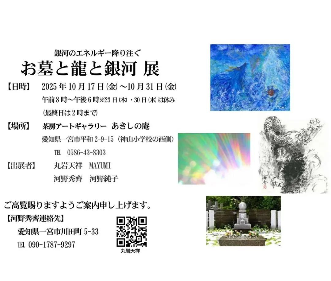 おはようございます。 ただいま一宮市平和にある あきしの庵にてグループ展を開催しています。今日は午後4時までいる予定でいます。よかったら是非見に来てくださいね。 どうぞ宜しくお願い致します🙇🩷 #銀河 #お墓 #龍 pic.x.com/I9UKF1e5gc