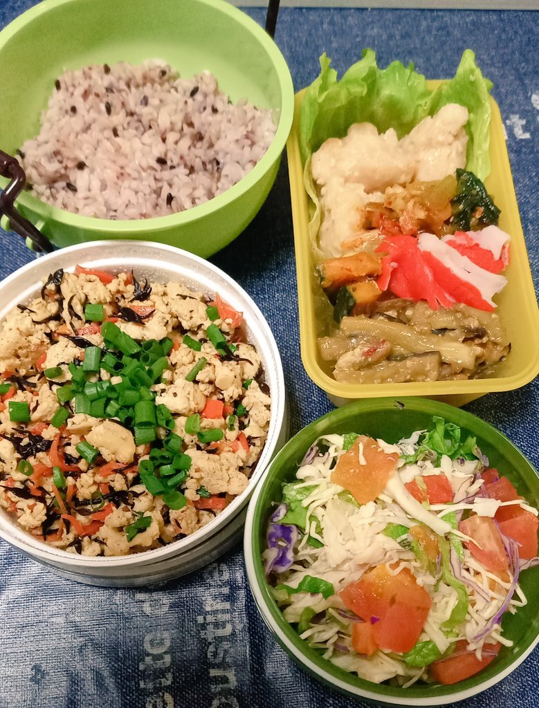 今日のお弁当は 炒り豆腐丼 弁当です ⭐すり身にたたいたエビを混ぜ、粕汁で茹でた「すり身ボール」でヘルシーな構成 ⭐昨日の麻婆豆腐にナス足して麻婆茄子にリメイクしました #お弁当 #お弁当記録 #お弁当作り楽しもう部 pic.x.com/y3LyUax4er