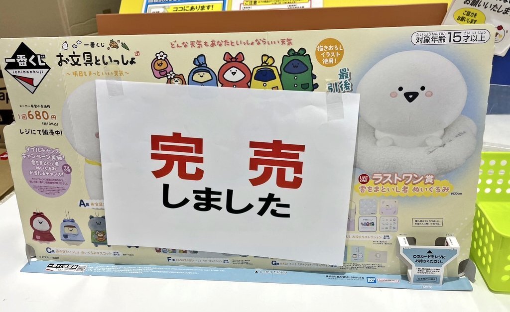 完売御礼ツ‼️ 『一番くじ お文具といっしょ ~明日もきっといい天気~🌞🌈』 皆様お買上げ ありがとうございましたツ‼️ #お文具といっしょ #お文具 #お文具さん #ブックマーケット上飯野店 pic.x.com/WTKq6gT5v6 x.com/bm_kamiiino/st…