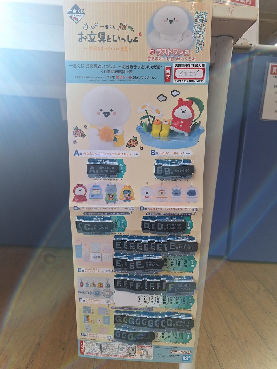 近所で一番引かれてそうな店行って、店頭の景品残り11 いちおうレジで確認 ワイ 残り何個ですか? 店員さん 1、2、3…(クジ数える) 何度か奥に入って確認 どうやらクジが足りないらしく クジ有5クジ無6で全部くださいしてきた! クジが足りんこともあるやな #お文具 #一番くじ pic.x.com/Cs9yB5t8Eq