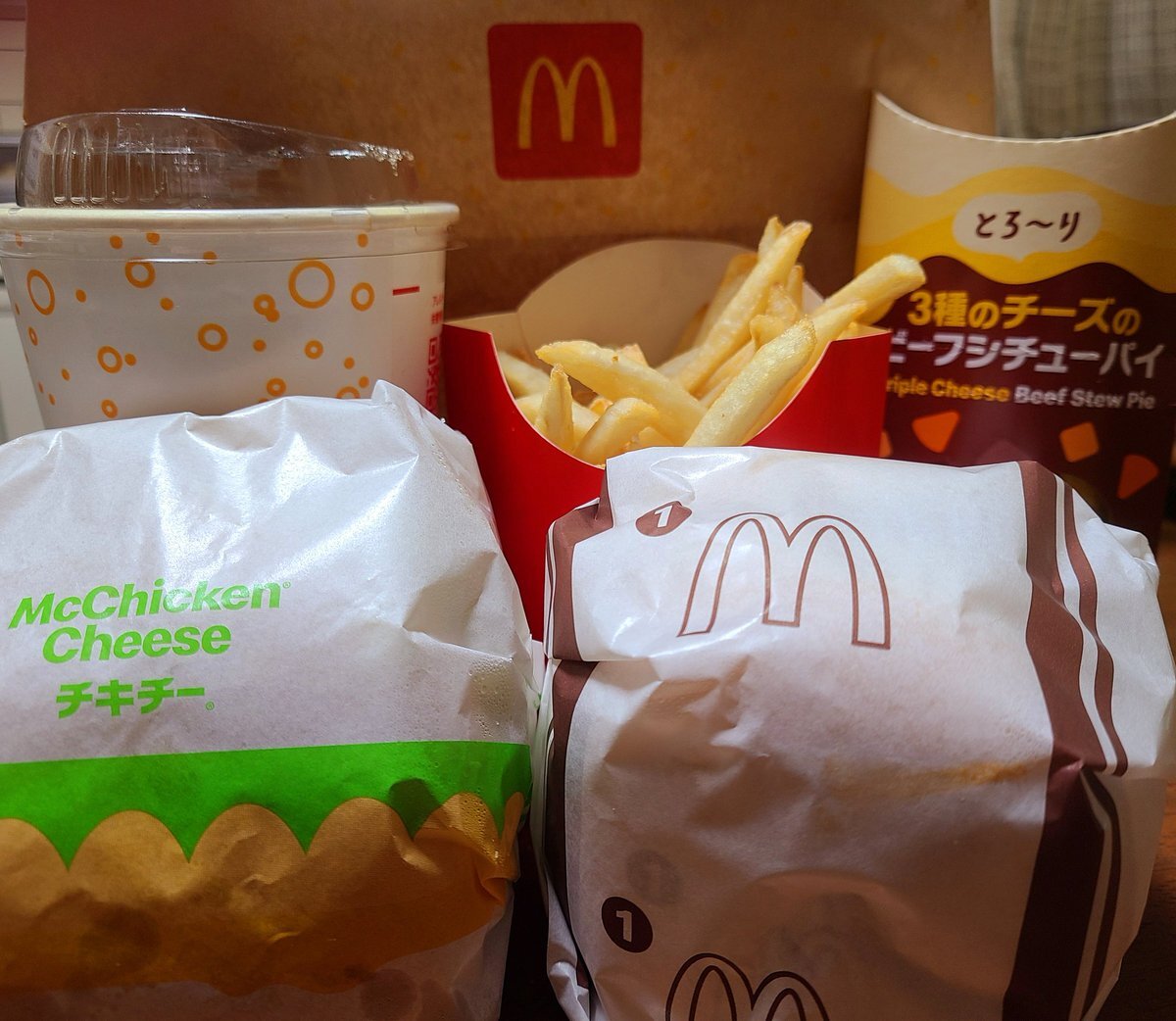 1週間頑張った自分に…Ⓜ️🍔🍟 同志さんに昨日、おすすめ頂いた 「ビーフシチューパイ」もっ! 全部今から一人でいただきます!🍴🙏 🍔はチキチーとデミグラコロ まだまだ、来週も頑張ります🔥 #お疲れ様 #食べ過ぎ pic.x.com/wSjUpUF9yy