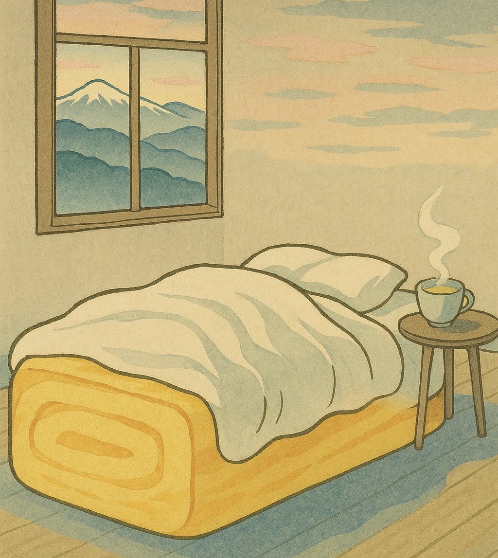 今日も一日お疲れ様です。 イラストは、ふわっふわの玉子焼きのようなベッドで寝られる部屋です。ちょっとだけ浮世絵雰囲気。 見てるだけで幸せのふわふわ寝心地😀 #空想フランス料理フルコース #イラスト #ふわふわ #風景画 #玉子焼き #お疲れ様 #日曜日 #お絵描き #illustrationart #artwork pic.x.com/wbsQfd77Tj