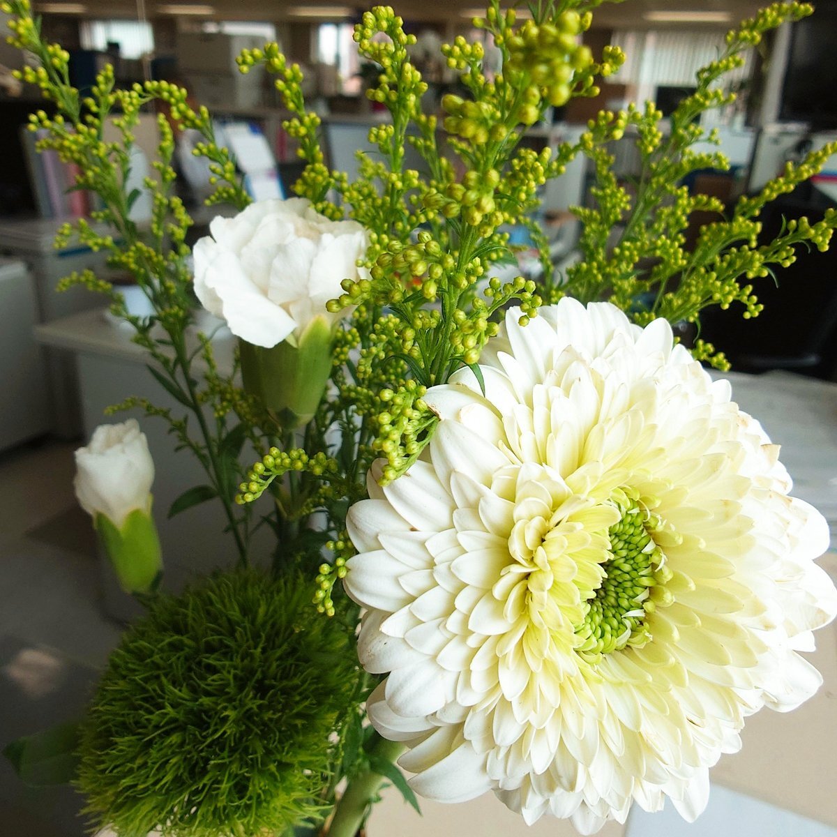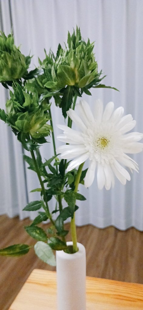 緑のスプレーバラ。 咲き進むと少しずつ淡く(白っぽく)なるそうです。 白いガーベラ。 私にとって初めての色。 いい気分です♫ 飾るセンスは……相変わらずゼロ😅 #シンプルライフ #お花のある暮らし pic.x.com/pJC2EUJy7E