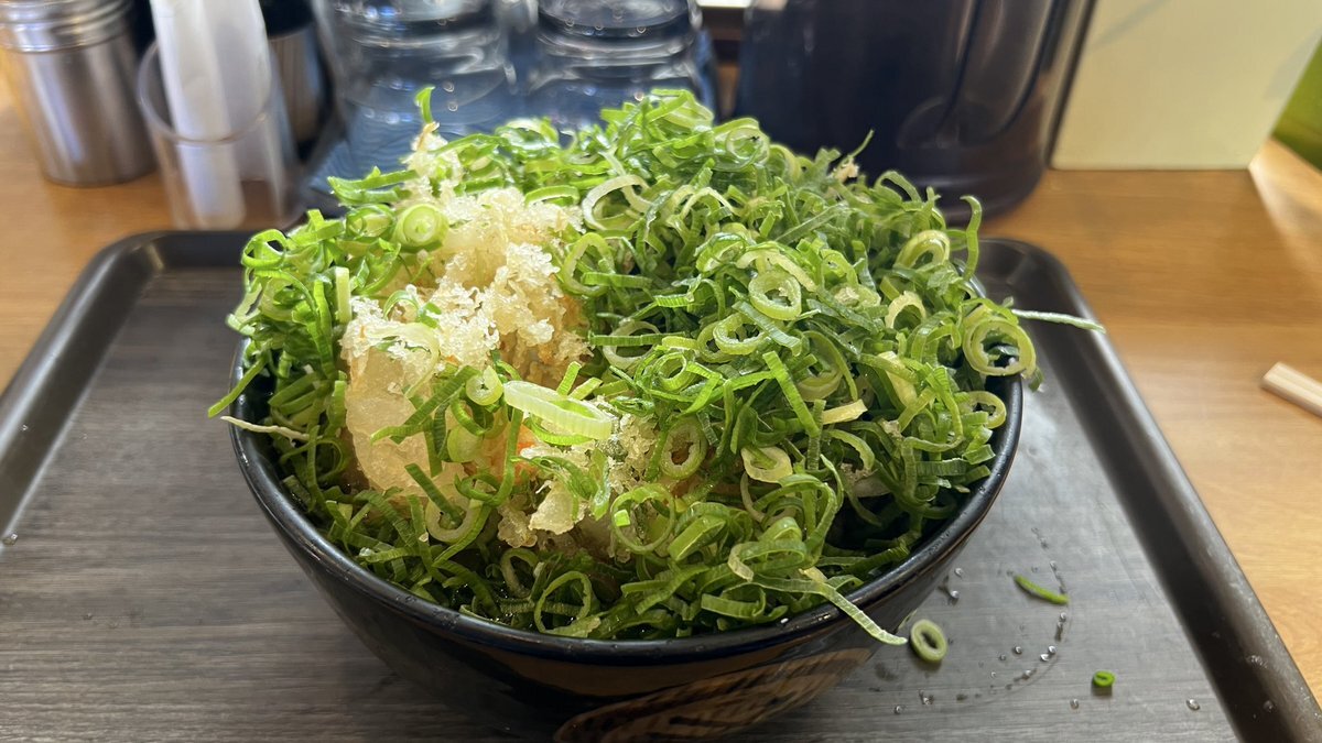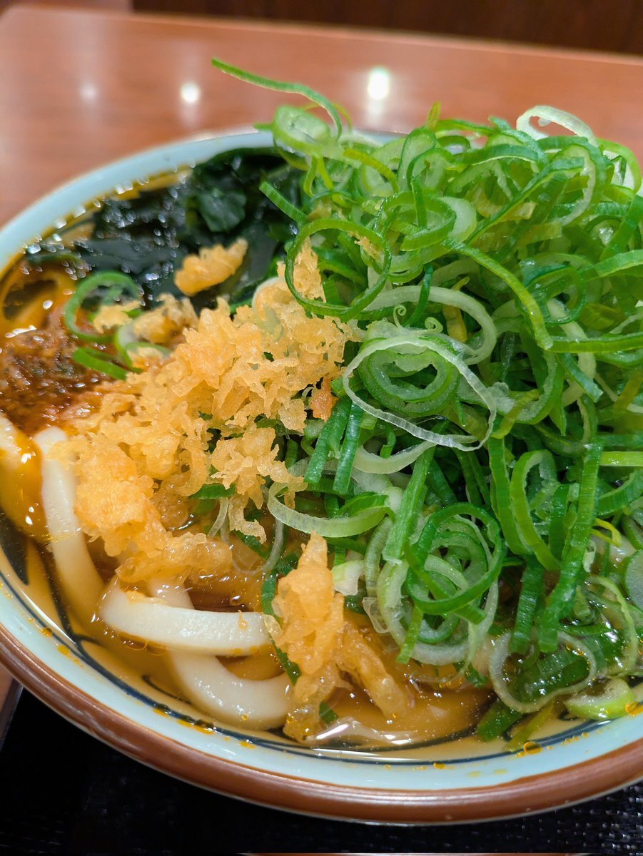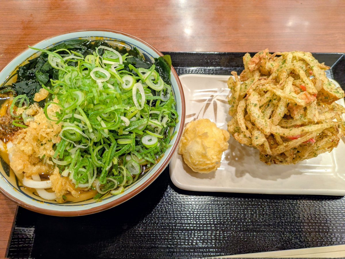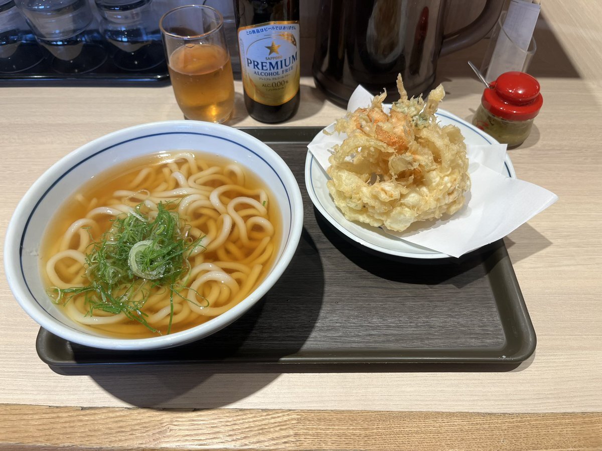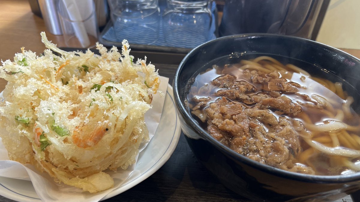 いつもは蕎麦派なんだけど、カウンターに座ってるお客さんが全員「かき揚げうどん(温)」を召し上がっていたので、真似しました。#ウエスト #博多うどん #かき揚げ pic.x.com/VhIKFSxuwJ