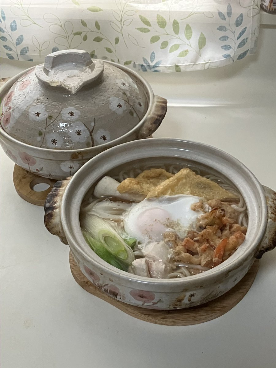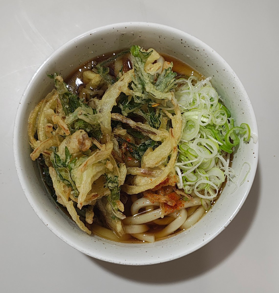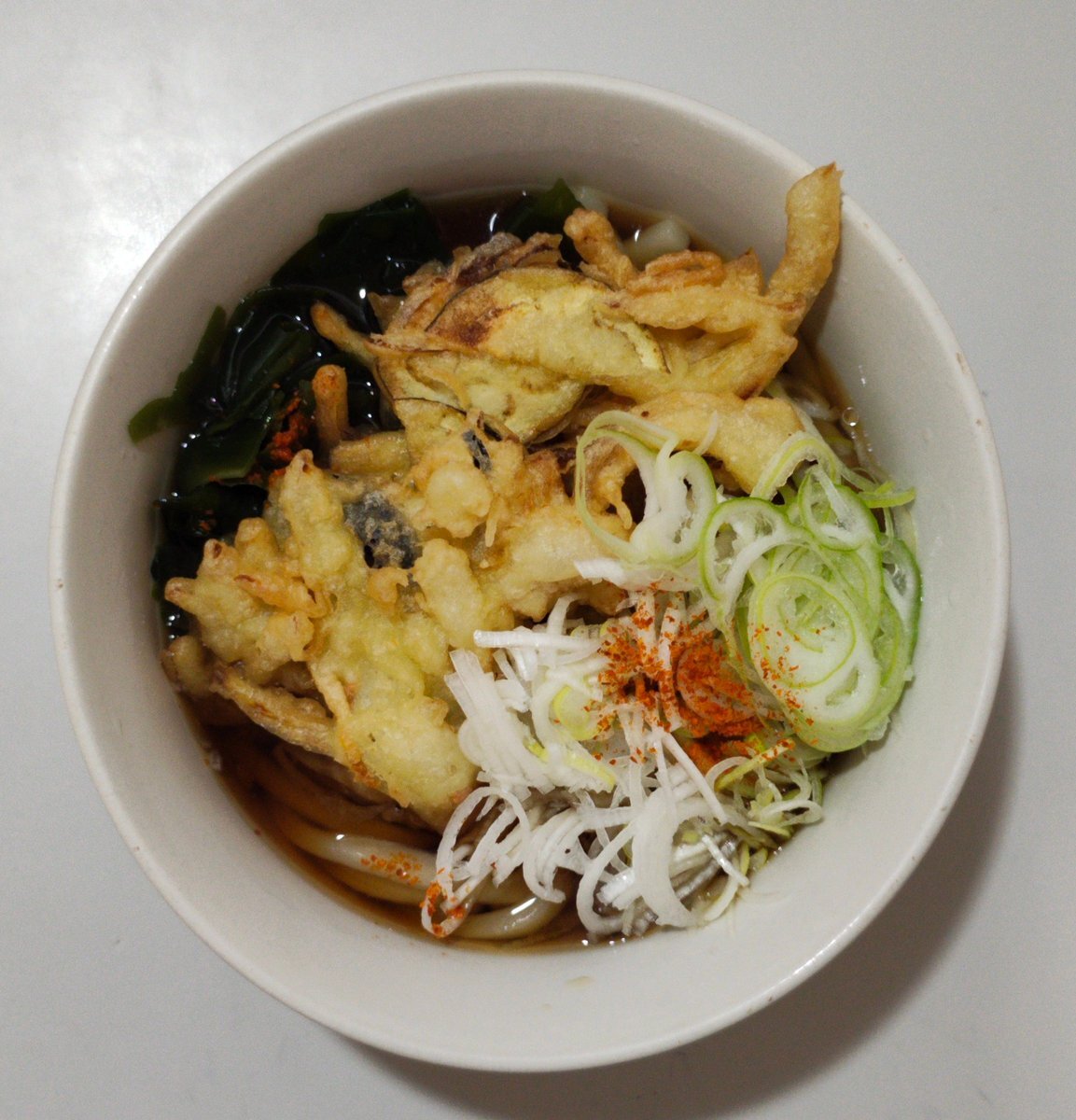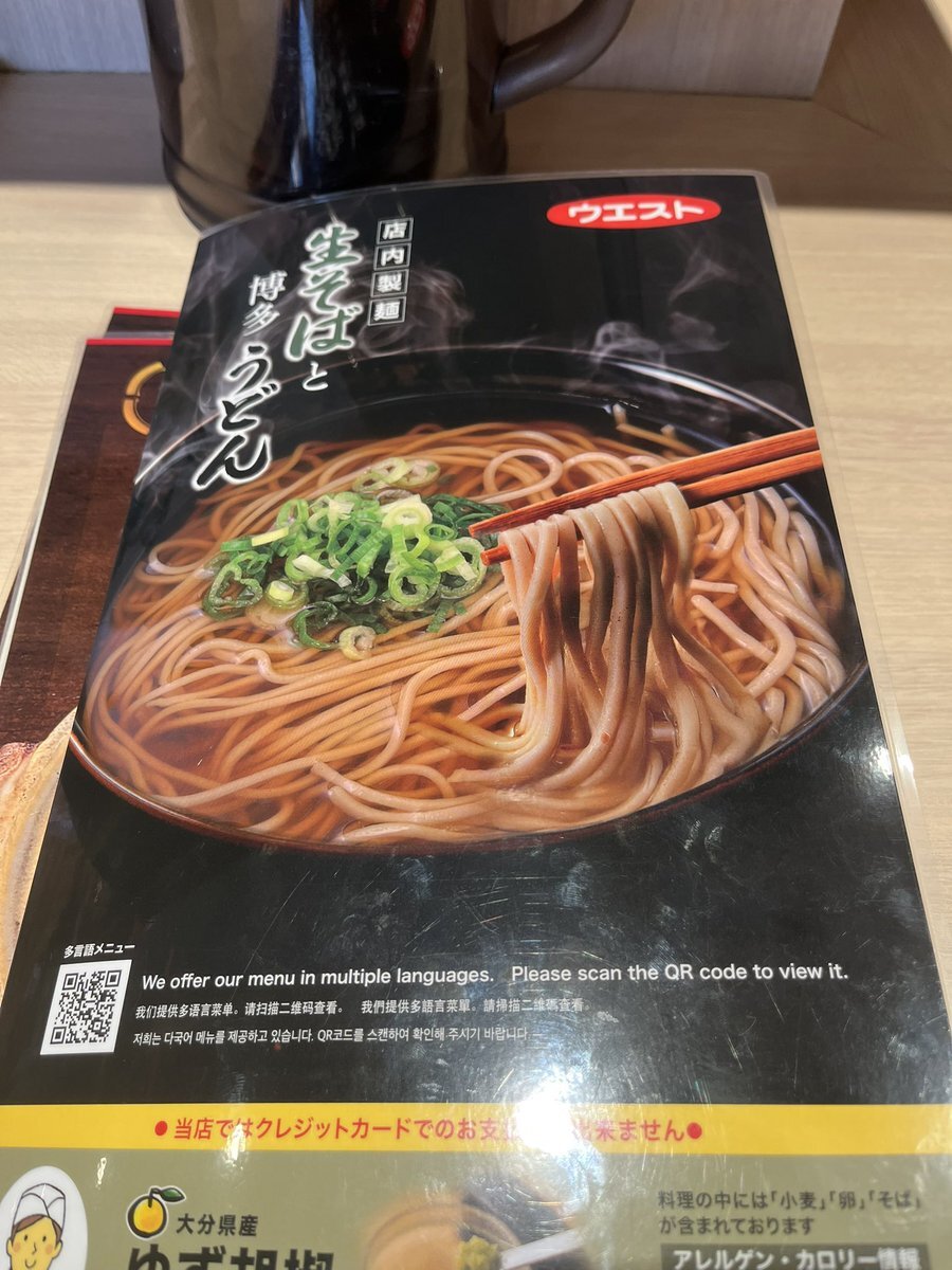 いつもは蕎麦派なんだけど、カウンターに座ってるお客さんが全員「かき揚げうどん(温)」を召し上がっていたので、真似しました。#ウエスト #博多うどん #かき揚げ pic.x.com/VhIKFSxuwJ