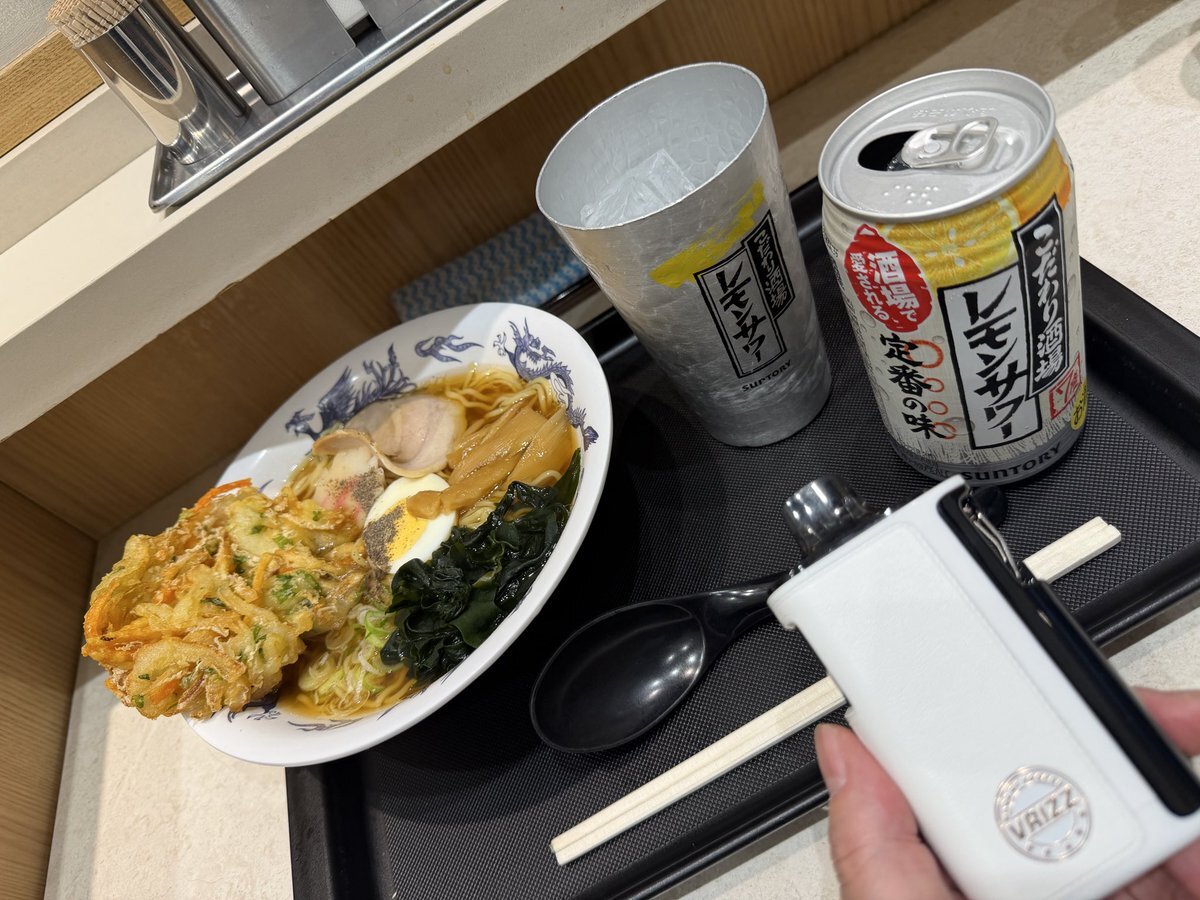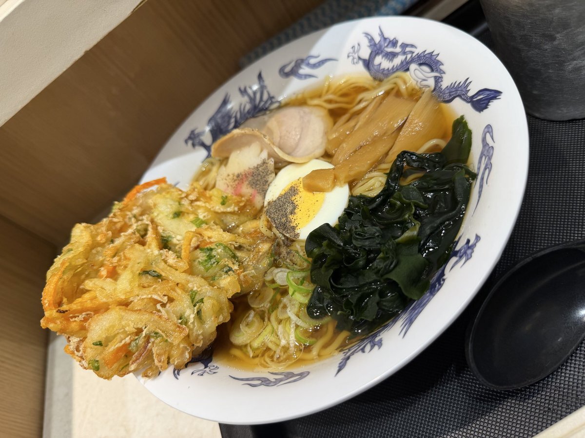 晩ごはん 昨日と打って変わって、超ジャンクめし。 #名代富士そば で #昔ながらの醤油ラーメン に #かき揚げ 乗せ。 あー、こういうかき揚げも、良いね! 醤油ラーメンのスープで、天抜き食べたい。٩( 'ω' )و pic.x.com/amFpBLUrzX