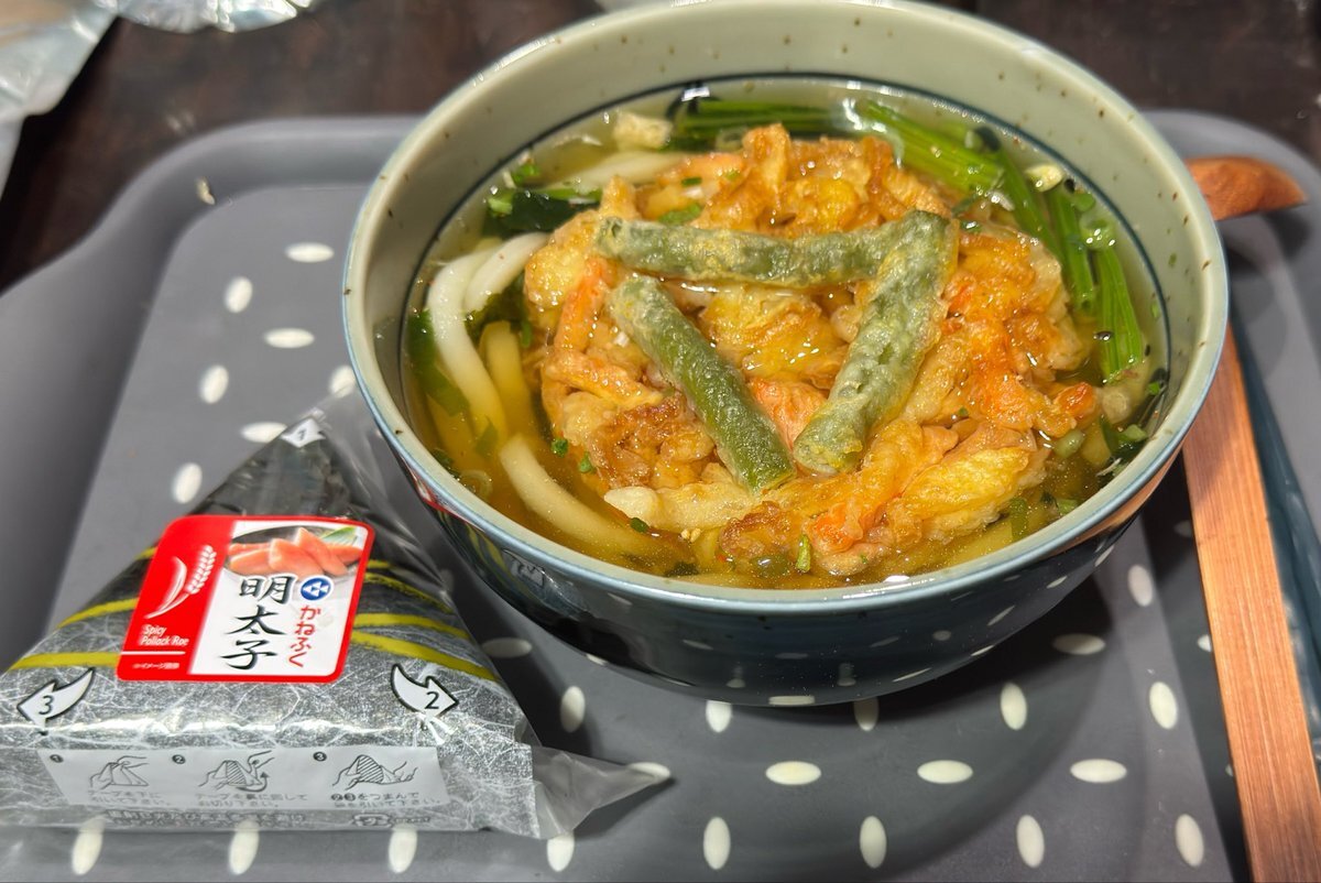 #夕食 #業務スーパー #冷凍讃岐うどん #ヒガシマルうどんスープ #かき揚げ #おにぎり 昨夜の夕食は業務スーパーの冷凍讃岐うどんでかき揚げうどんと明太子のおにぎり🍙 pic.x.com/dGOlHVndBZ