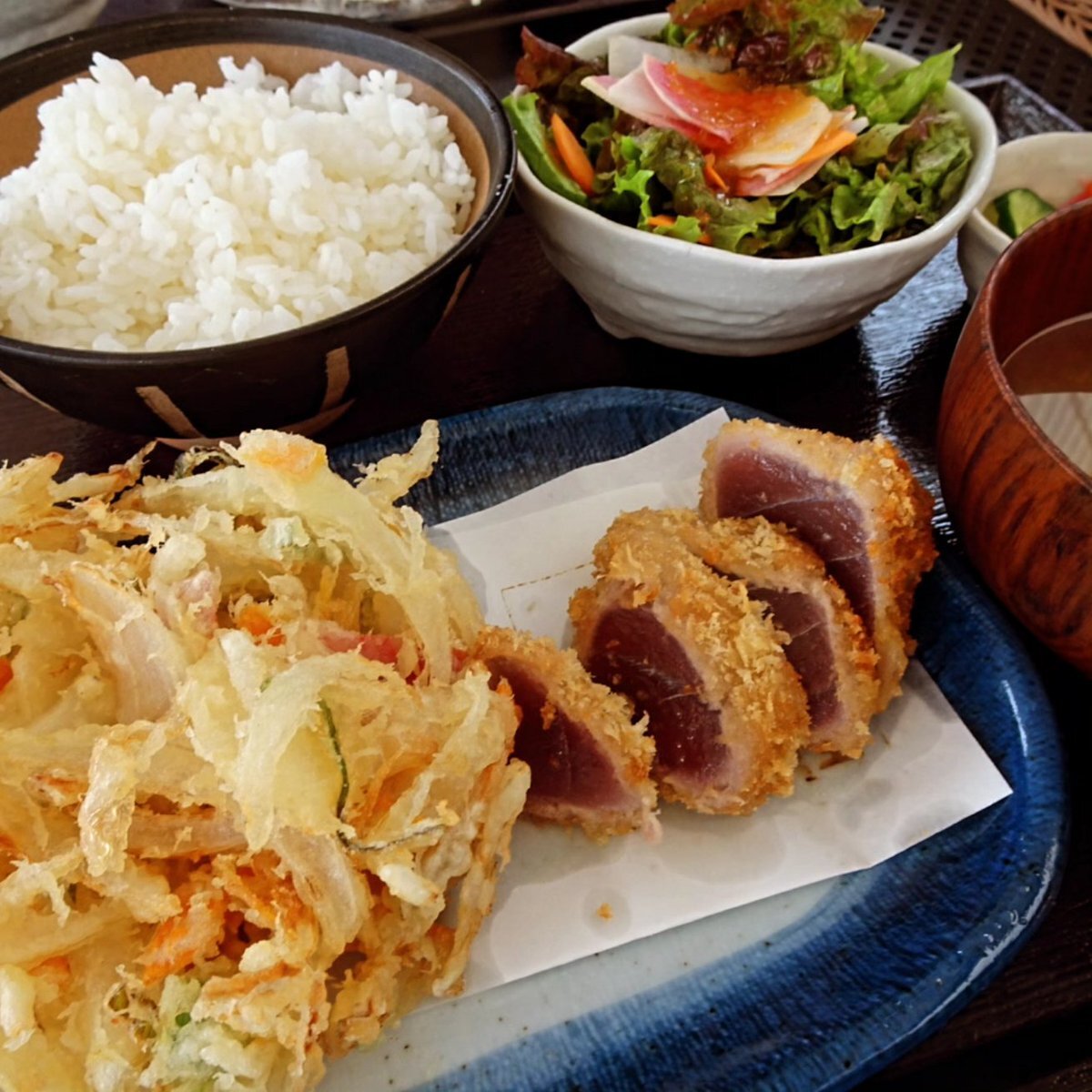 週末昼メシ、材木座「海沿いのキコリ食堂」。マグロレアカツかき揚げ定食に、奥様はからあげ定食とかき揚げ単品。うわさ通り、このかき揚げはサクサクで確かに美味しい。ワンコOKも助かります。 umizoi-kicorishokudou.com #材木座 #海沿いのキコリ食堂 #かき揚げ pic.x.com/3uEbMahJxx