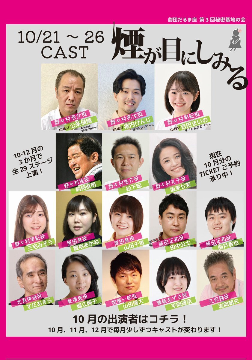 10月25日(土)13時〜の回が満席となってしまいました💦 公条の出演回をご検討下さっている方は ①21日(火)19時〜(完売間近) ②23日(木)14時〜 のいずれかを狙ってやってくださいませ🙏 公条チケットご予約⬇️ quartet-online.net/ticket/kemuri2… どうぞ宜しくお願いします🙇 #煙2025 #秘密基地の会
