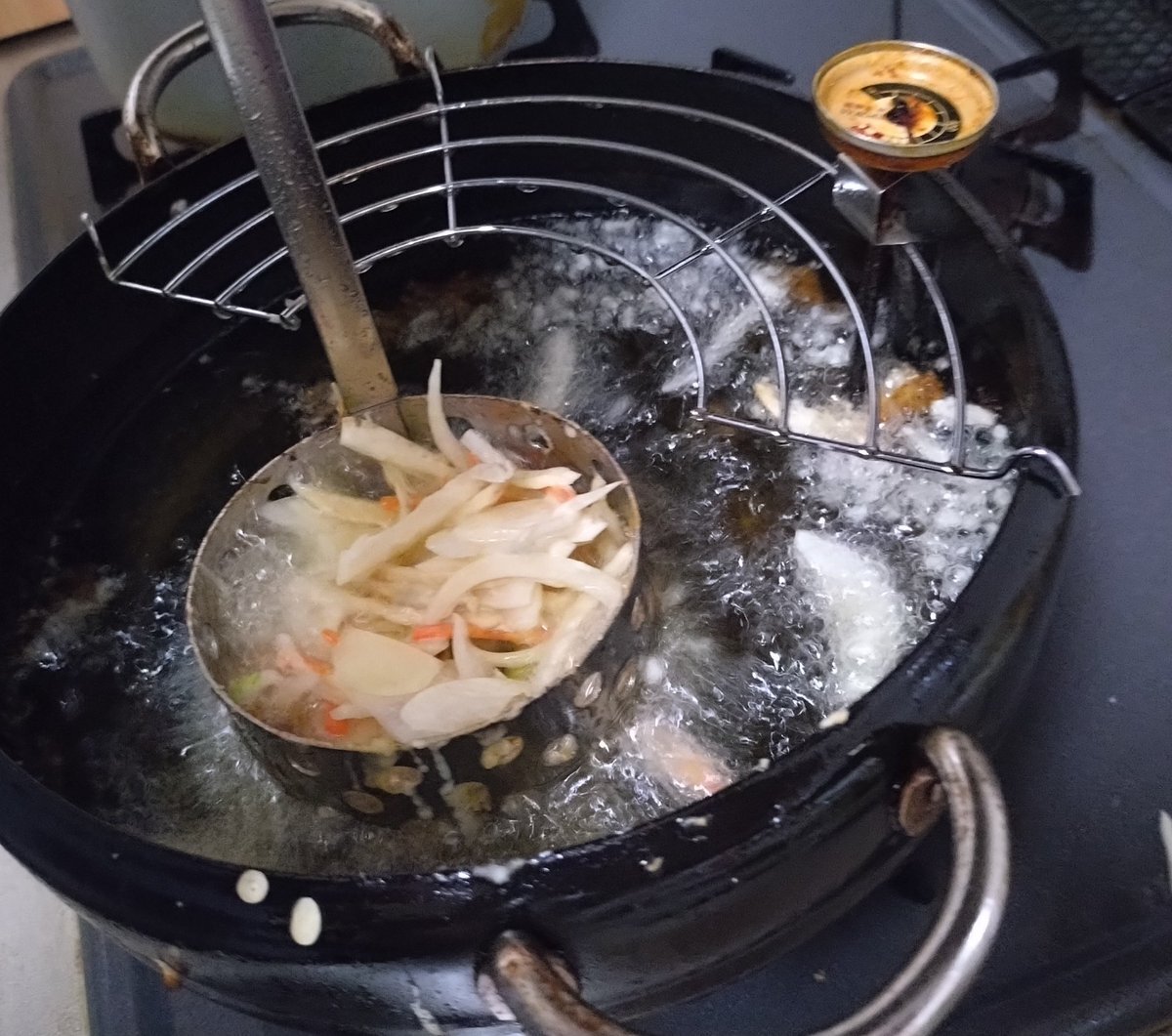 私が定期検診の歯医者から帰宅すると 夫は めちゃめちゃ楽しそうに かき揚げを揚げていました笑 すてきすぎる(ʘᴗʘ✿) 美味しかった♥ 天タレがまた最高に美味♪ 料理男子モテるわ 夫は、かき揚げを上手に作るプロを尊敬すると言ってたwww #かき揚げリング #かき揚げ #料理男子 pic.x.com/1aY9xReMHr x.com/ikuko322/statu…