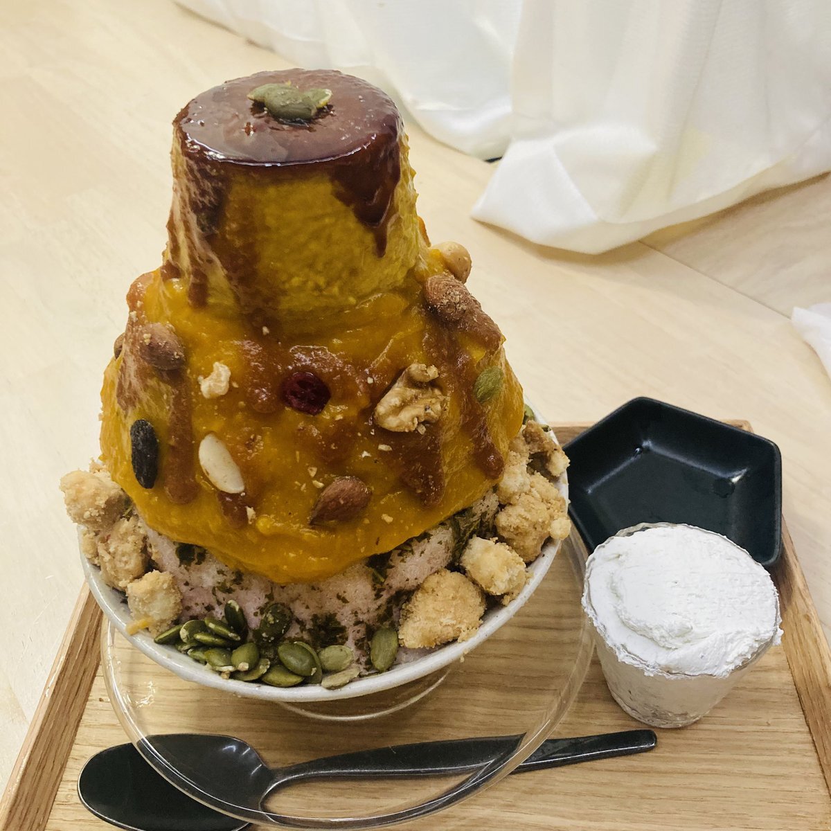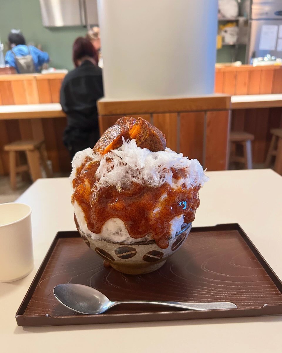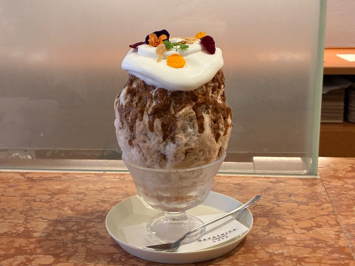カフェハヤシヤにて 『カスタム氷2』 カスタム2杯目は 藻塩キャラメル、コーヒーシロップ 底にはシナモンジンジャーを忍ばせました。 そして焼き芋塩バターキャラメルと、ラム酒ケーキをトッピング。 欲望のままに2025ハヤシヤさんのかき氷食べ納めを楽しみました🥰 #かき氷 #かき氷愛好家 pic.x.com/WmXFe9K31D