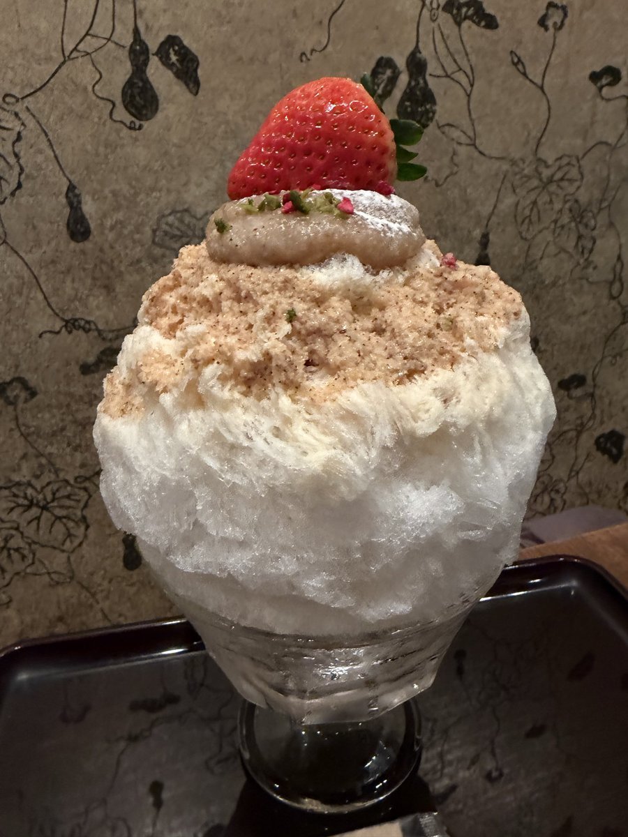今日のかき氷🍧 愛のかたまり(古都華ピスタチオモンブラン) 豪華~✨✨ Xmasシーズンはピスタチオのかき氷があちこちで食べられて嬉しい🥰 (でもかき氷の値段が高くなって、もう友達は誘えなくなっちゃった…) #かき氷みしょう #かき氷 pic.x.com/2ekX6yl7In
