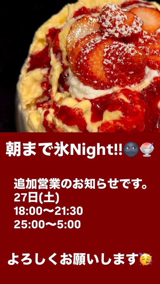 Sの氷、年内の追加営業が決まりました! しかも夜通し🌙削ります🍧 深夜にかき氷食べたい方、忘年会の後にかき氷食べたい方、新宿歌舞伎町「Sの氷」でお待ちしております❣️ #Sの氷 #かき氷 #ゴーラー #新宿かき氷 #かき氷好きと繋がりたい #歌舞伎町 pic.x.com/o21LSAXE8a