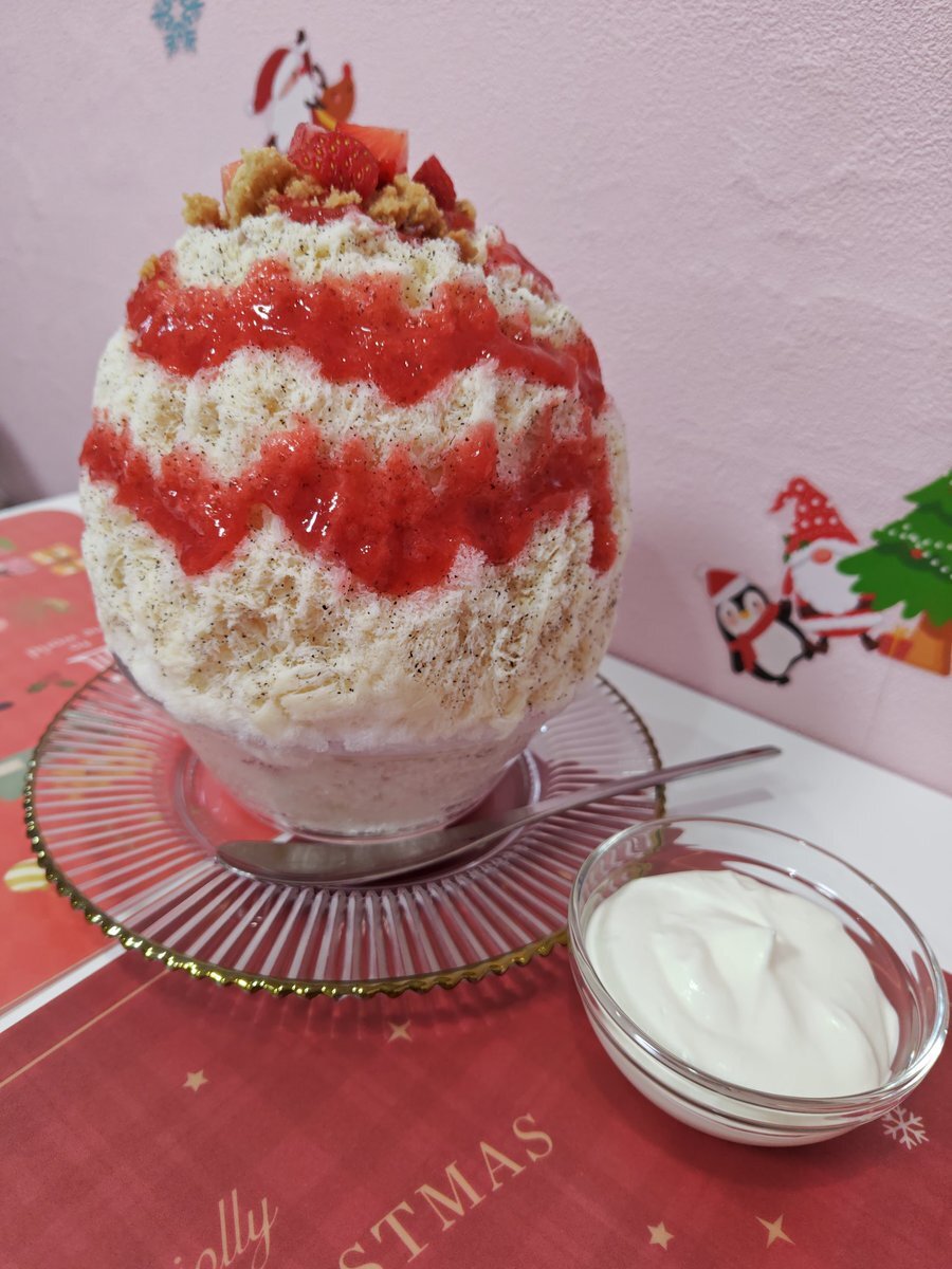12月22日氷活 巣鴨の雪菓さんへ オープン前に着いたけど思ってた以上に並んでいてびっくり!さすが雪菓さん! Xmas氷9 チーズとイチゴ🍓 美味しかでたなぁー そのあとすぐまる天さんで恒例の海老マヨ棒食べたー これも美味しすぎ! #かき氷 #雪菓 #巣鴨 pic.x.com/os8pGVD4RH