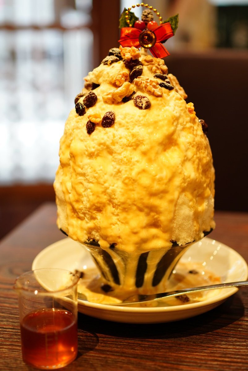 今日も固体のH2Oを粉砕してとてつもなく美味しくしたやつをいただいてます。くるみとラム酒しみしみレーズンたっぷりで本当に幸せ。早起きして明け方に走ってよかった。 #まめ茶和ん #かき氷 pic.x.com/IYE9178IWg