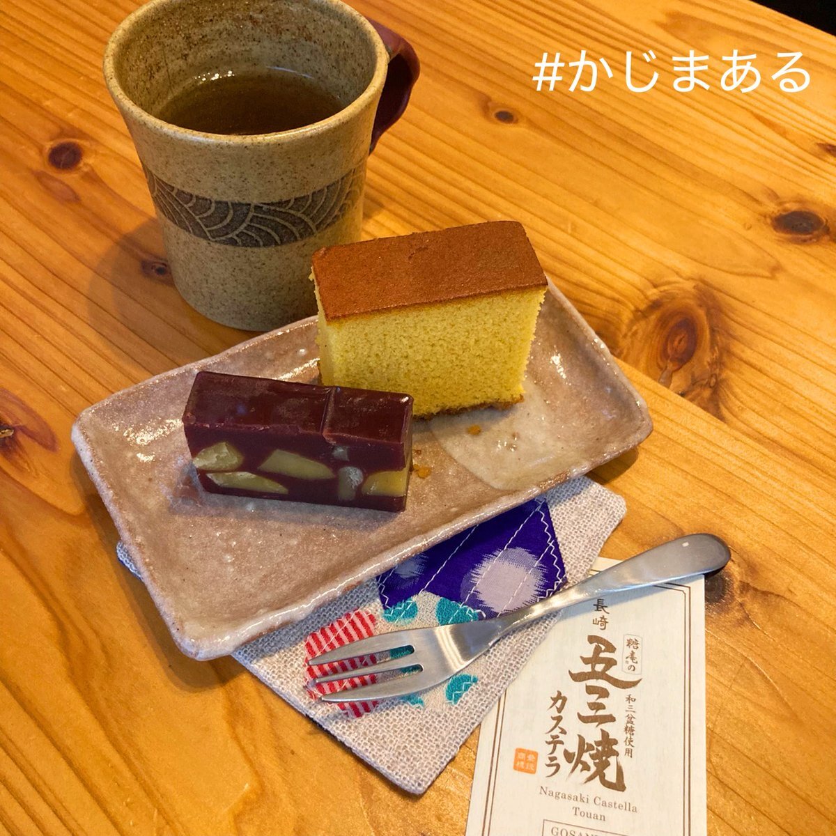 おやつで一休みしました。 池袋東武で開催中の #大長崎展 で見つけた「五三焼カステラ」… 美味しいです!! 卵黄と卵白の比率が5:3だそうです。ゴージャス! #虎屋 の栗羊羹は断面が美しい… 食べたら、またお掃除がんばります♪ #おやつ #家事代行 #かじまある #かじまあるスタッフ🐷 pic.x.com/M1bsVVK56O