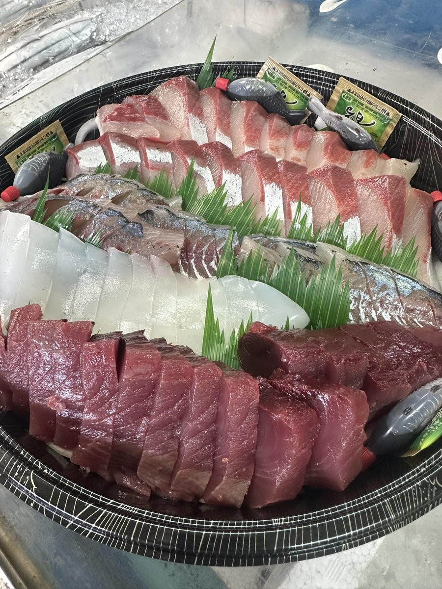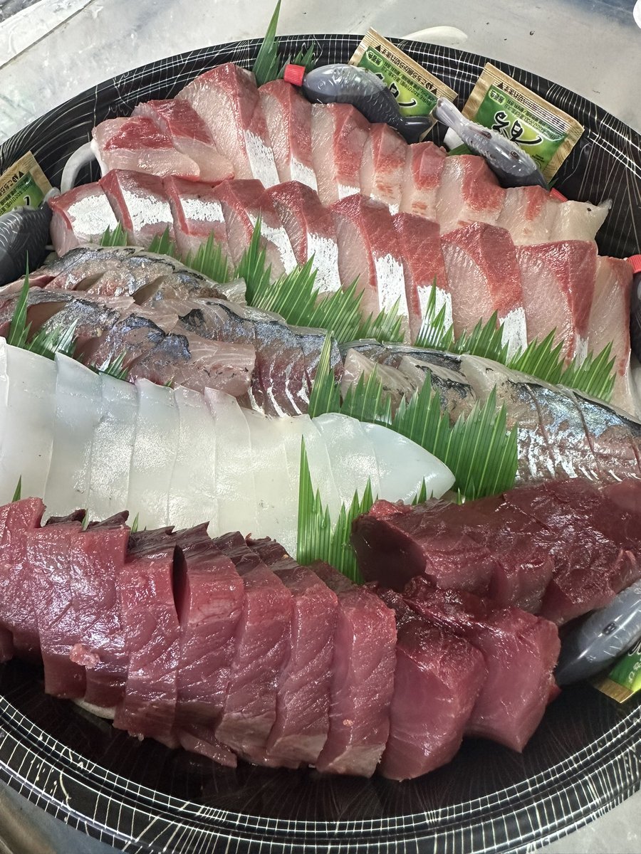 さあ晴れました☀️風は、強そうです 暖かい服装で頑張りましょう 台風も熱帯低気圧になった?なるみたい 今週末は、イベントも多そうです 津島町は、文化祭があったり!美味しいもんお届けします  #かつおのたたき  #刺身の盛り合わせ pic.x.com/sLiGLR2Cxj