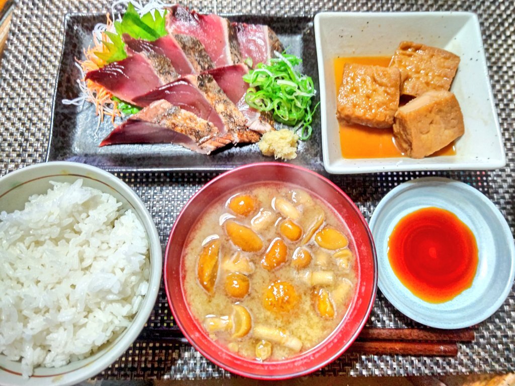 今日の朝ごはん「かつおのタタキ定食」😀千葉県産の鰹のタタキに青葱とおろし生姜を添えました✌️炊きたてご飯となめこ汁と一緒に頂きま~す😋🍴💕#おうちごはん #料理好きな人と繋がりたい #かつおのたたき #なめこ汁 # #朝ごはん pic.x.com/HgJpsb20hZ